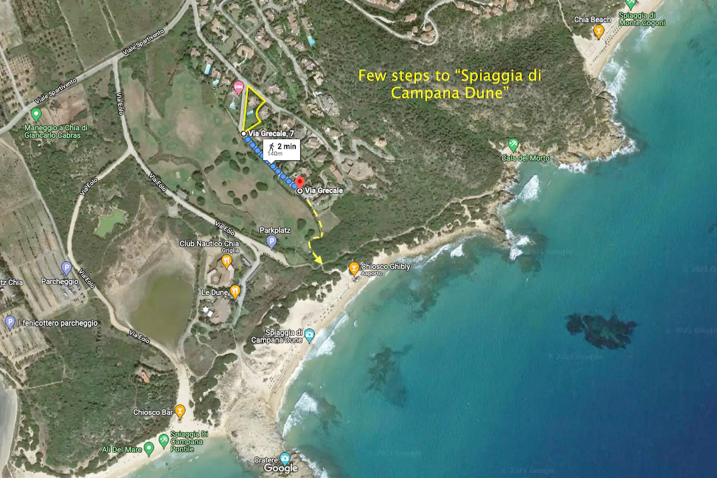Entfernung vom Flughafen CAGLIARI ca. 55 km - von OLBIA ca. 3,5 Autostunden und ALGHERO ca. 3,5 Autostunden.