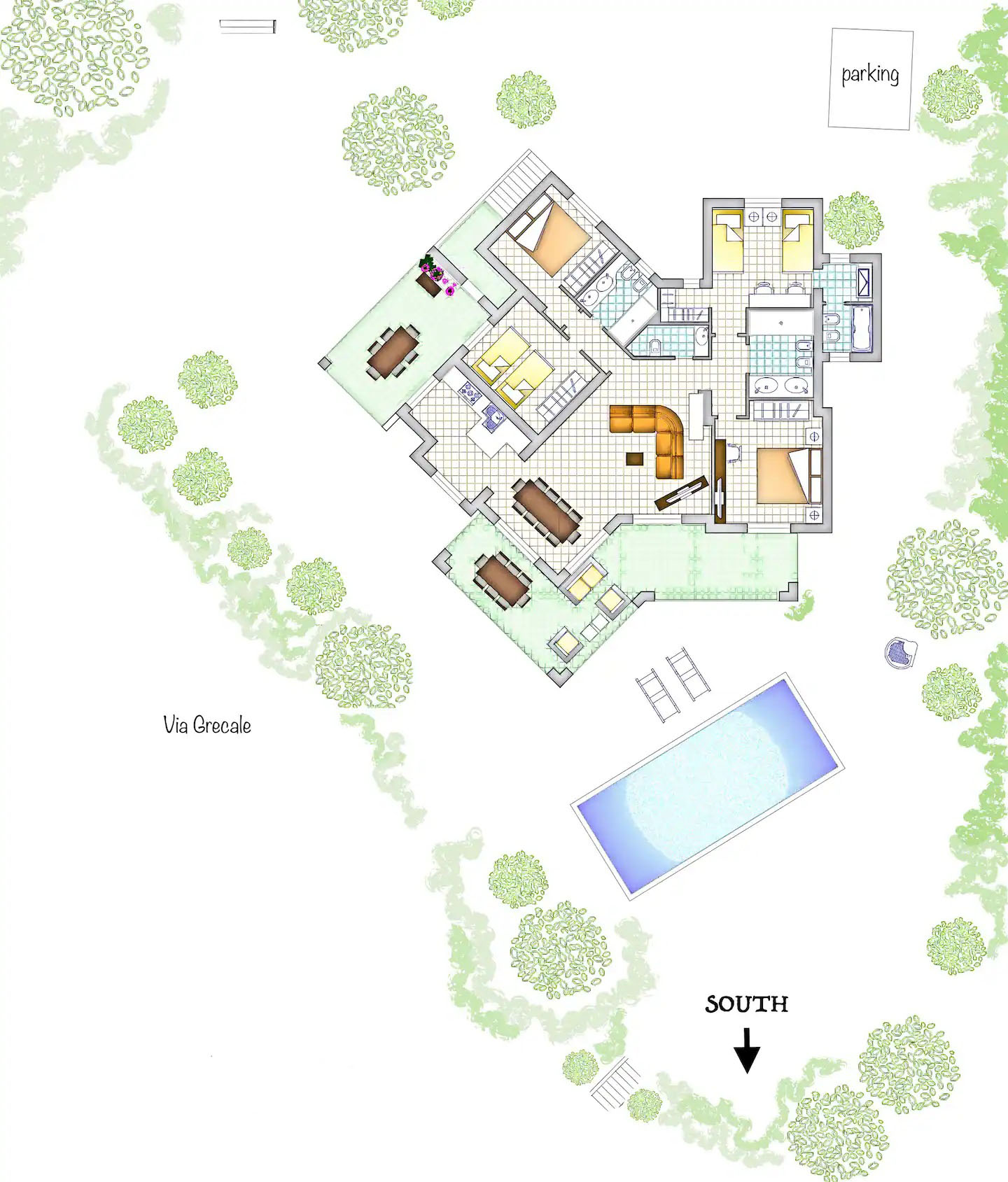 Die Ferienvilla bietet auf ca. 200 qm Wohnfläche eine Beherbergung für max. 8 Erwachsene + 2 Kinder und ist wie folgt aufgeteilt: