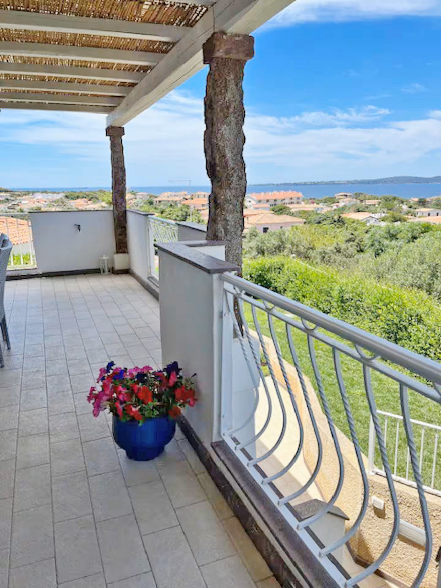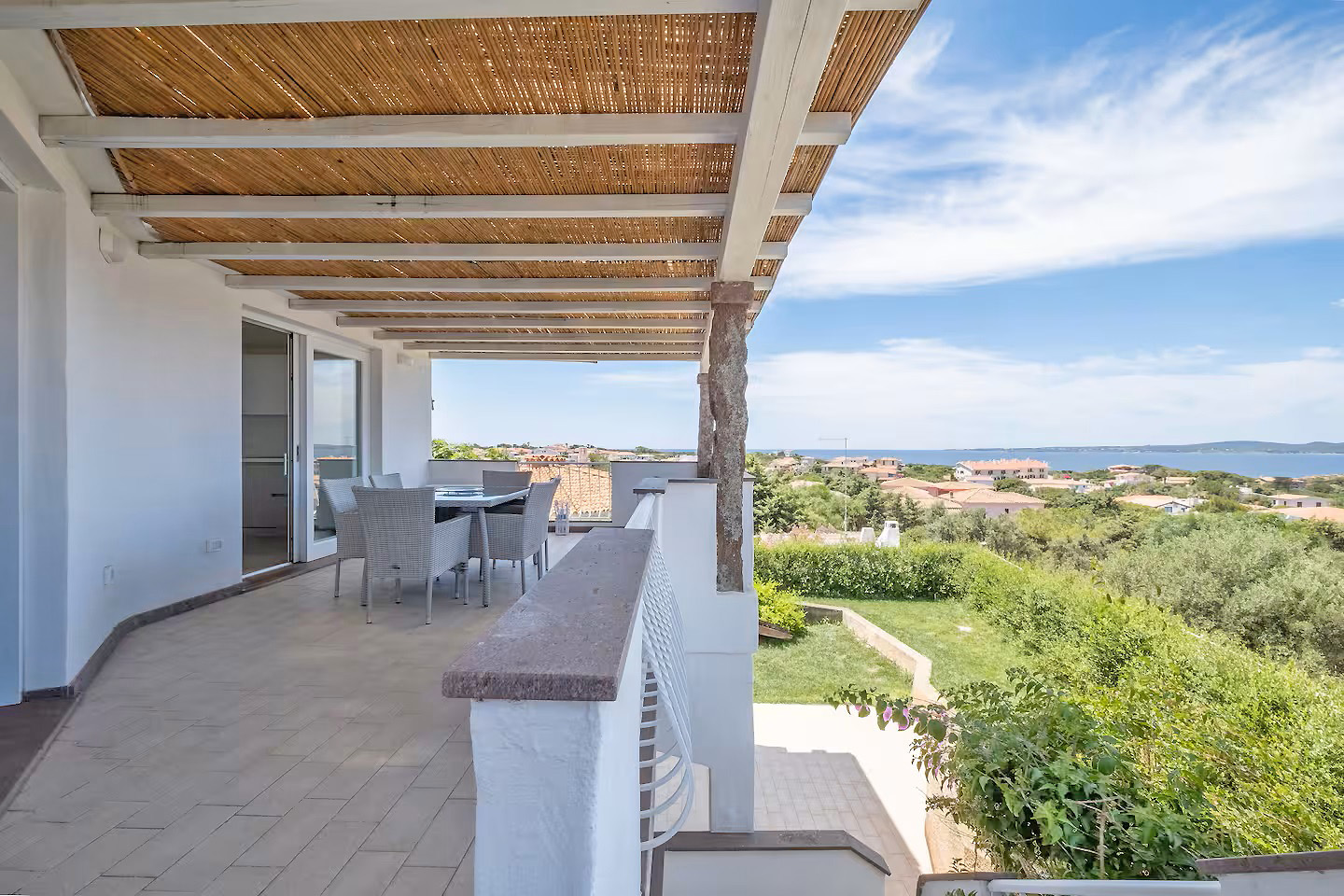 Die Wohnfläche dieses hier angebotenen Ferienhauses befindet sich auf 2 Ebenen mit Garten und Terrasse mit Blick aufs Meer. Die Hauptebene besteht aus einem hellen Wohnbereich mit Küchenzeile, einer überdachten Panoramaterrasse mit Blick auf den Sonnenuntergang, dem Hauptschlafzimmer mit einem Fenster mit Blick auf das Meer und einem kompletten Badezimmer mit Dusche/ WC/ Bidet.
