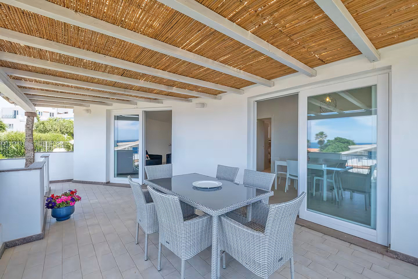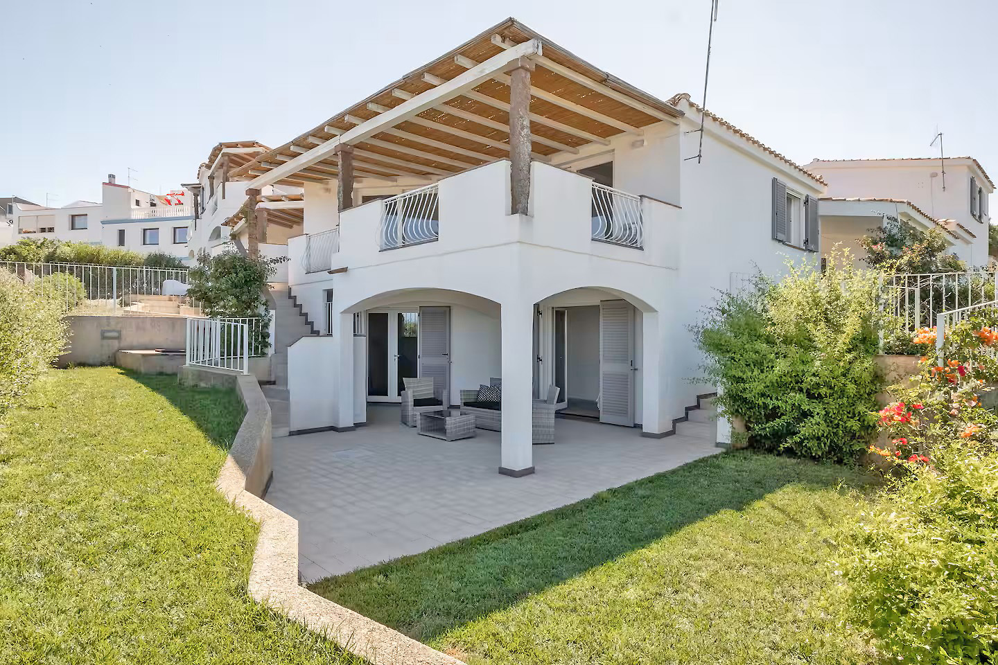 Die Außenbereiche der Häuser sind für einen erholsamen Urlaub im Freien eingerichtet. Die Innenräume sind immer sehr hell, mit großen Fenstern mit Blick auf den Strand, und in hellen Farben eingerichtet, die sie noch einladender und komfortabler machen.
