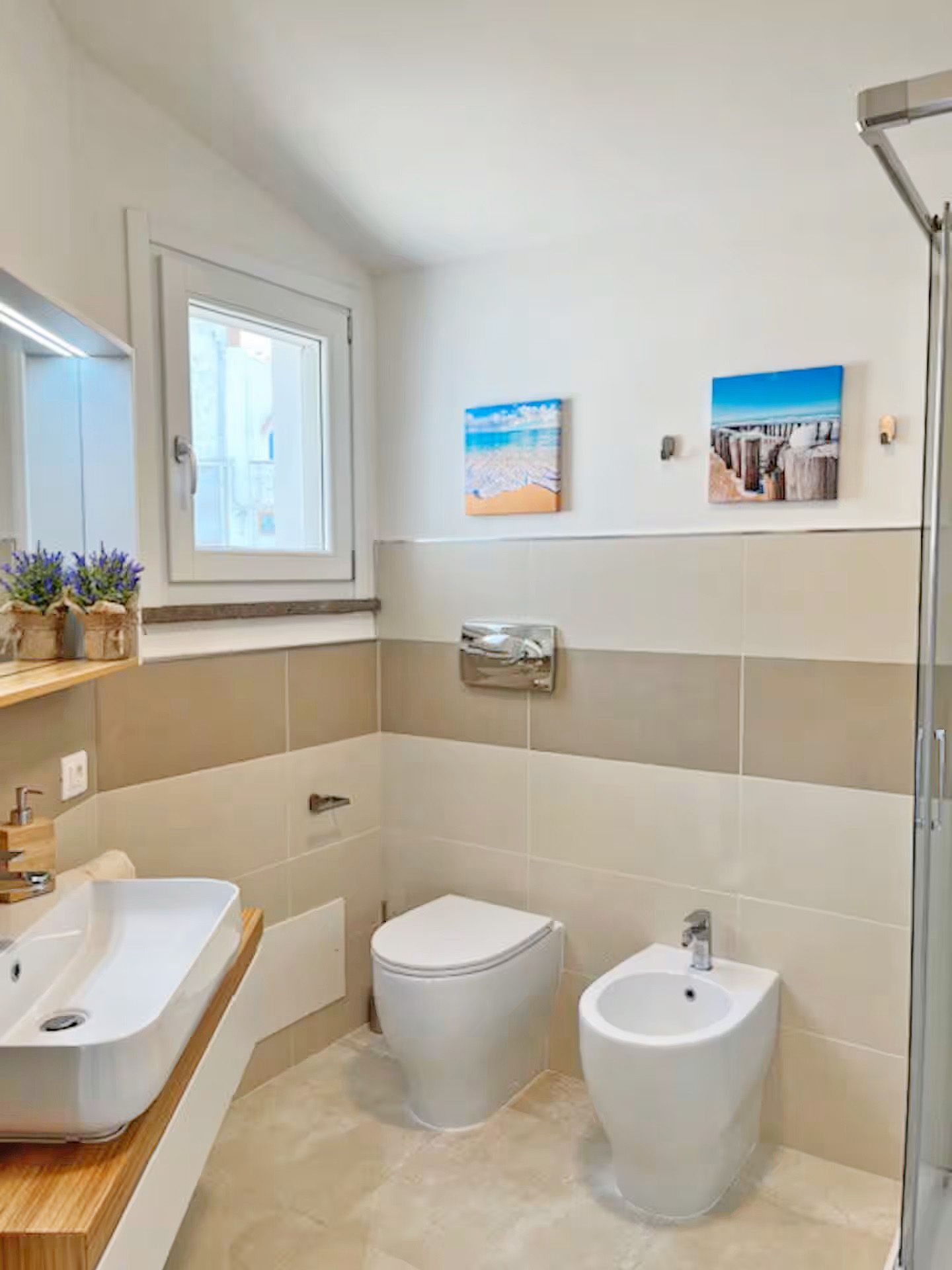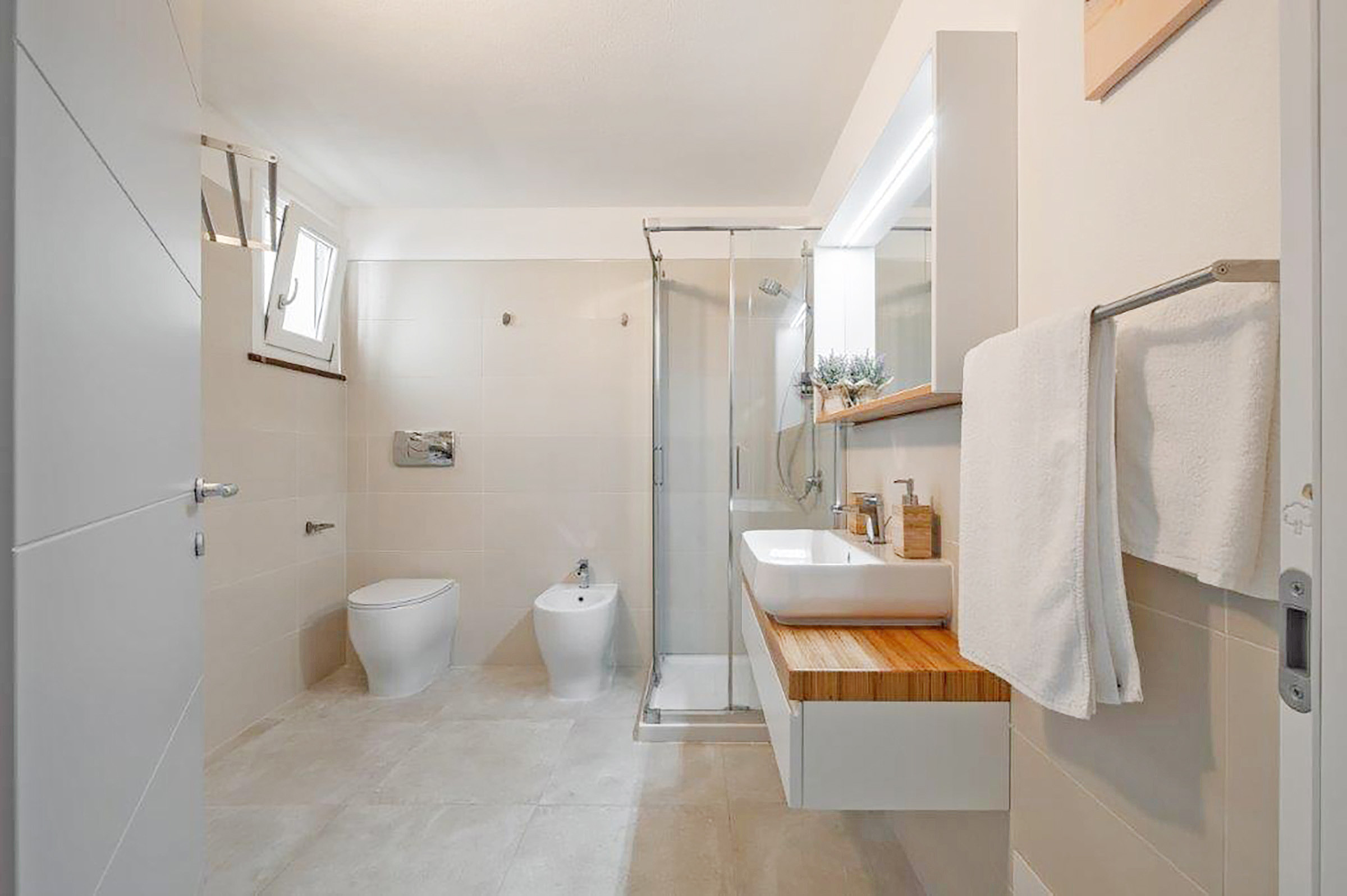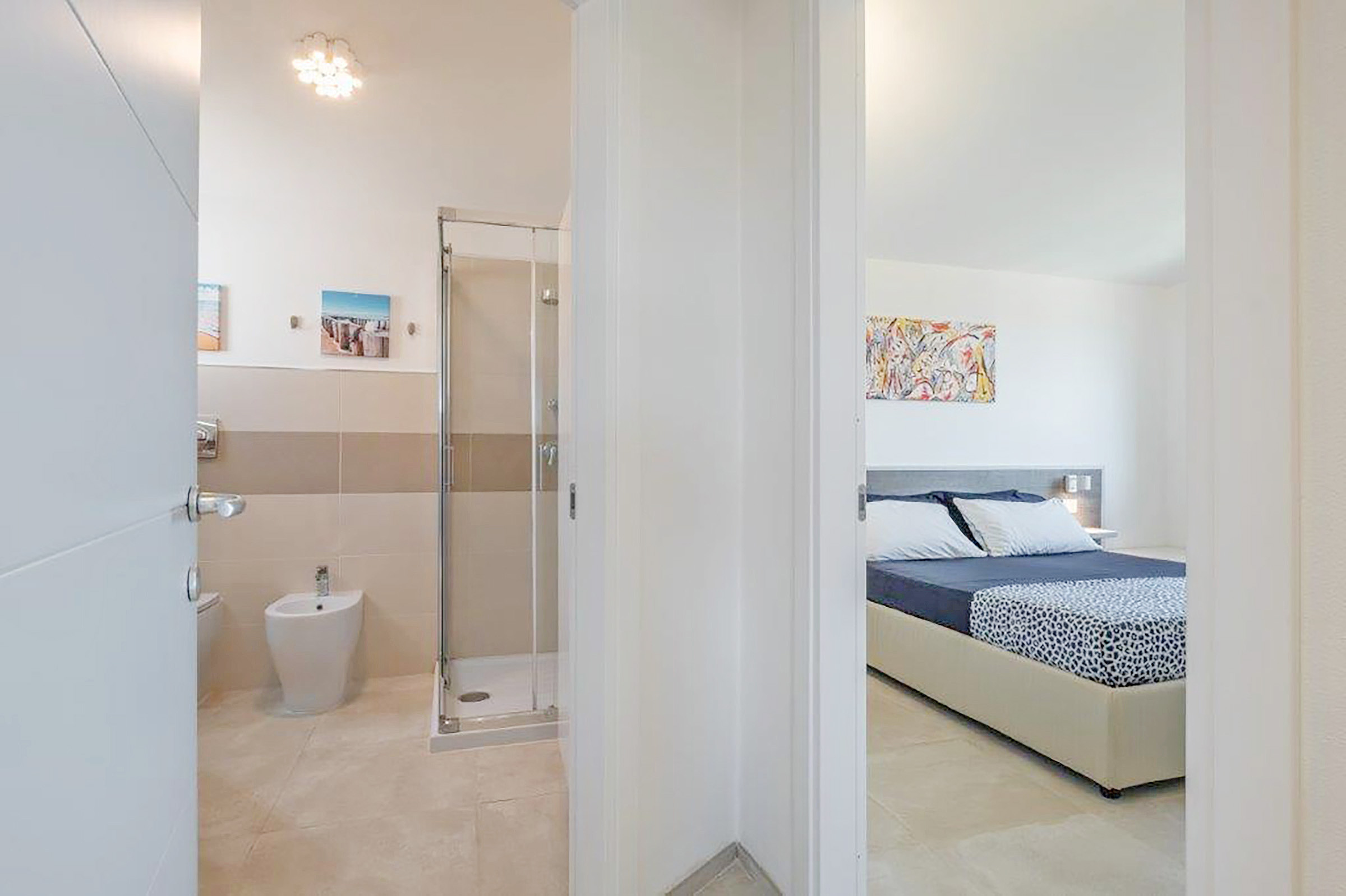 Die weitere Ebene umfasst einen Flur, ein weiteres zweites Schlafzimmer mit Doppelbetten und ein weiteres Badezimmer mit Dusche/ WC/ Bidet und Waschmaschine. Eine WLAN-Internetverbindung ist verfügbar. Haustiere sind gegen einen Aufpreis auch willkommen.