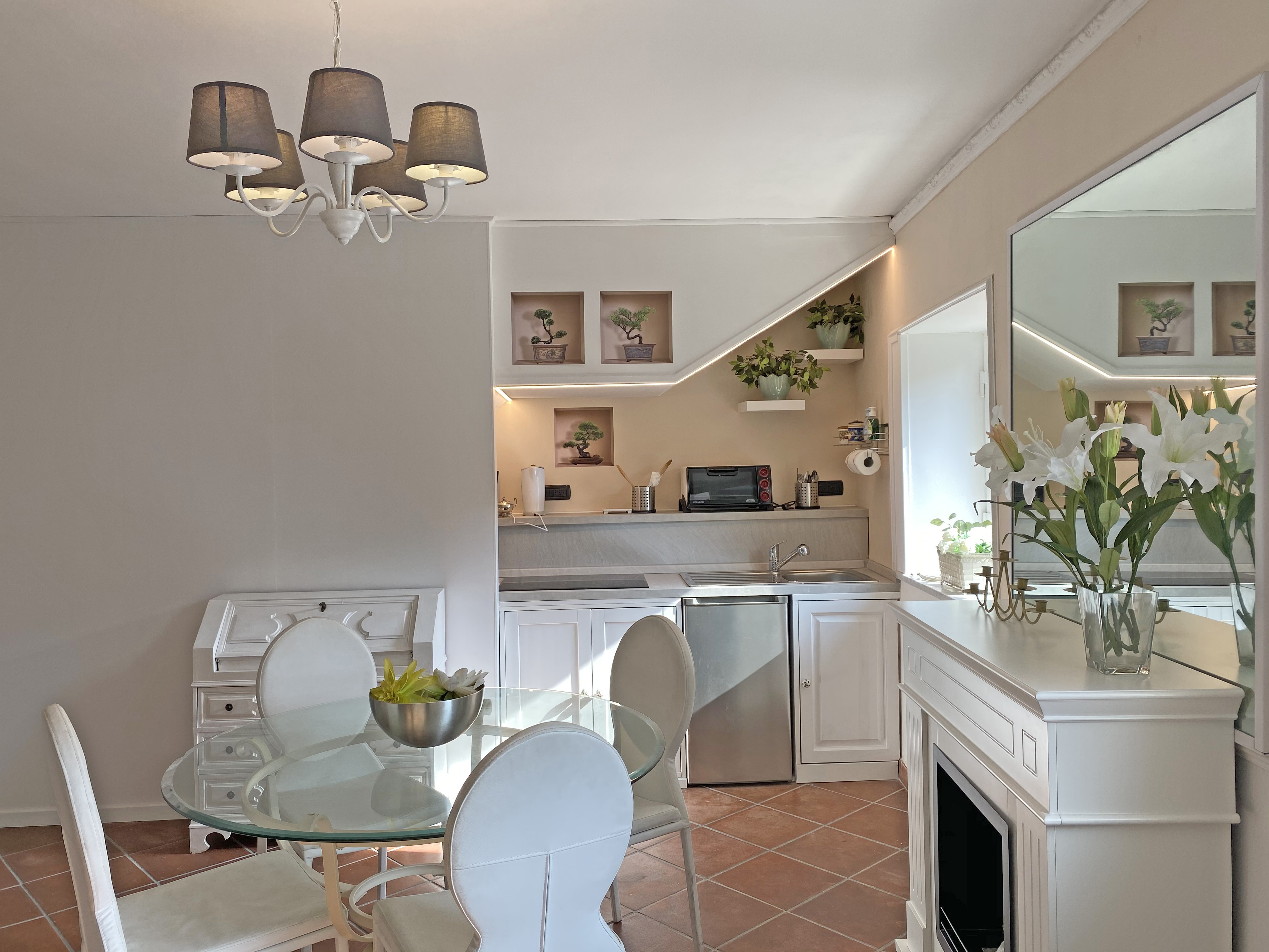 Die Wohnung verfügt über eine separate möblierte Terrasse ausgestattet mit Grill, Kochnische und Sommerwohnzimmer. Das Haus eignet sich besonders für Paare, die Ruhe und Unabhängigkeit sucht oder für zwei Freunde, die in getrennten Betten schlafen wollen (Doppelschlafsofa + Doppelbett).