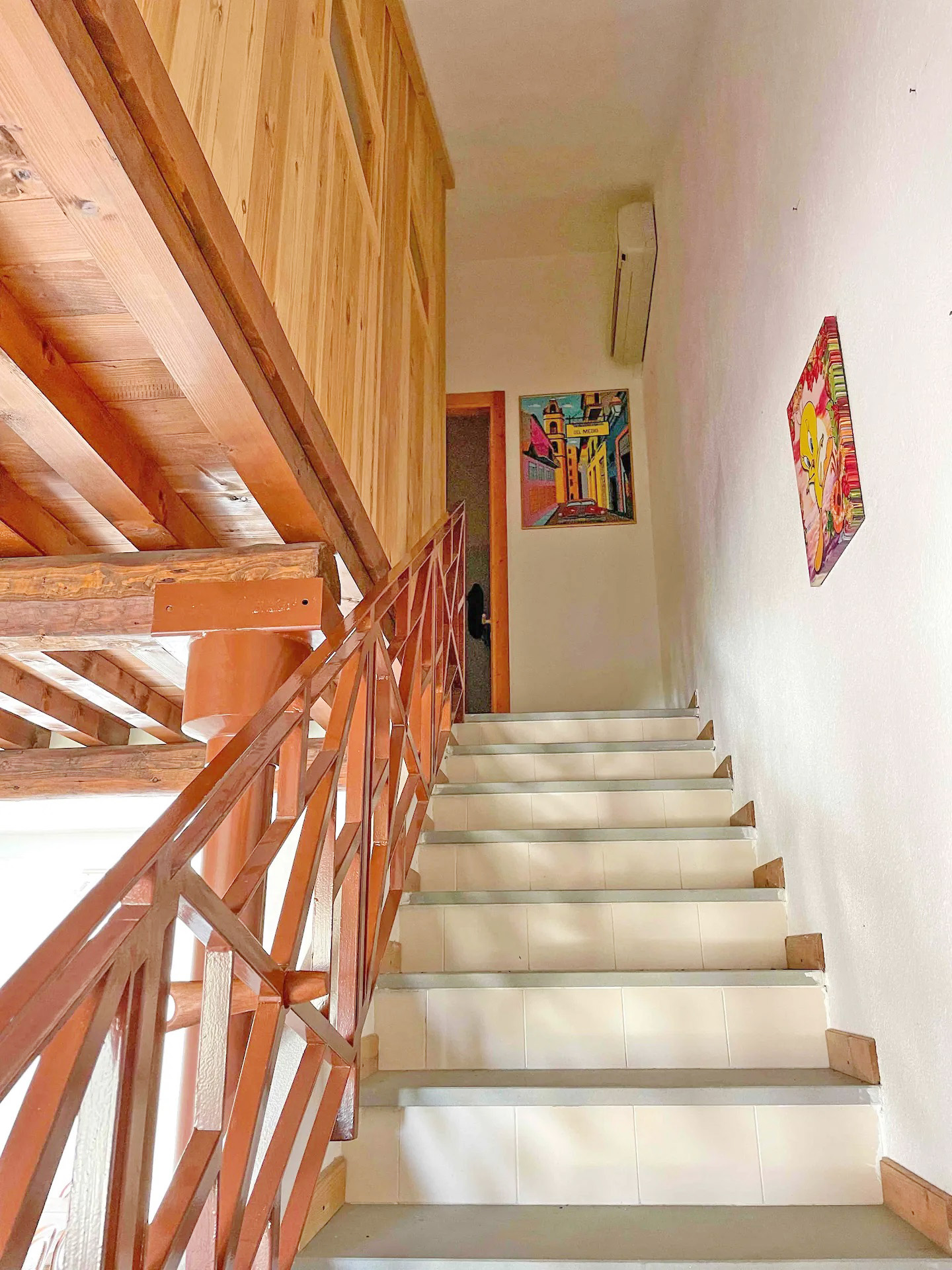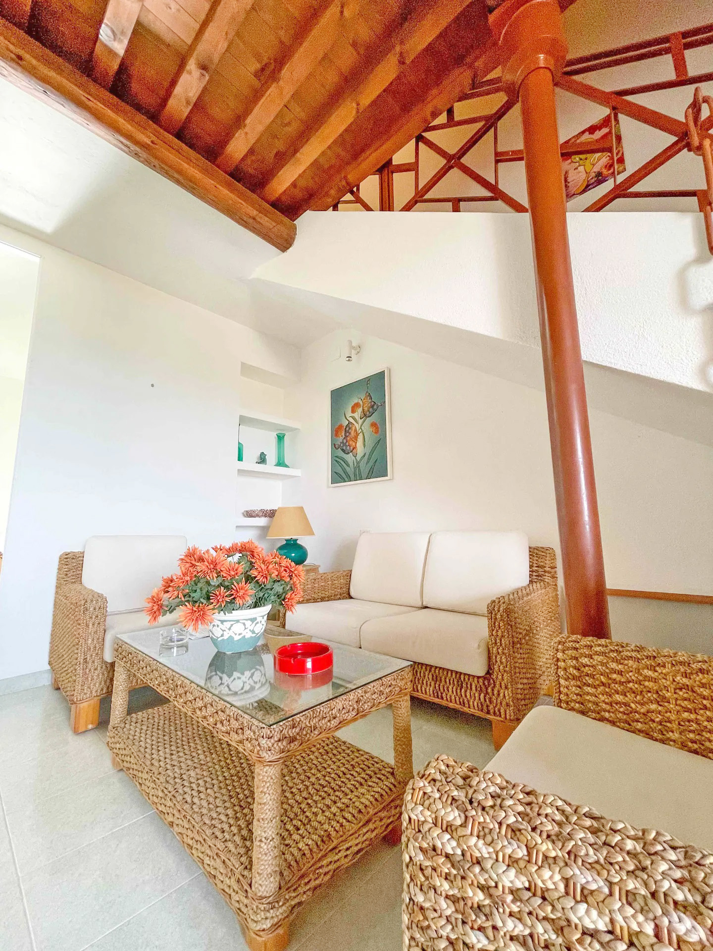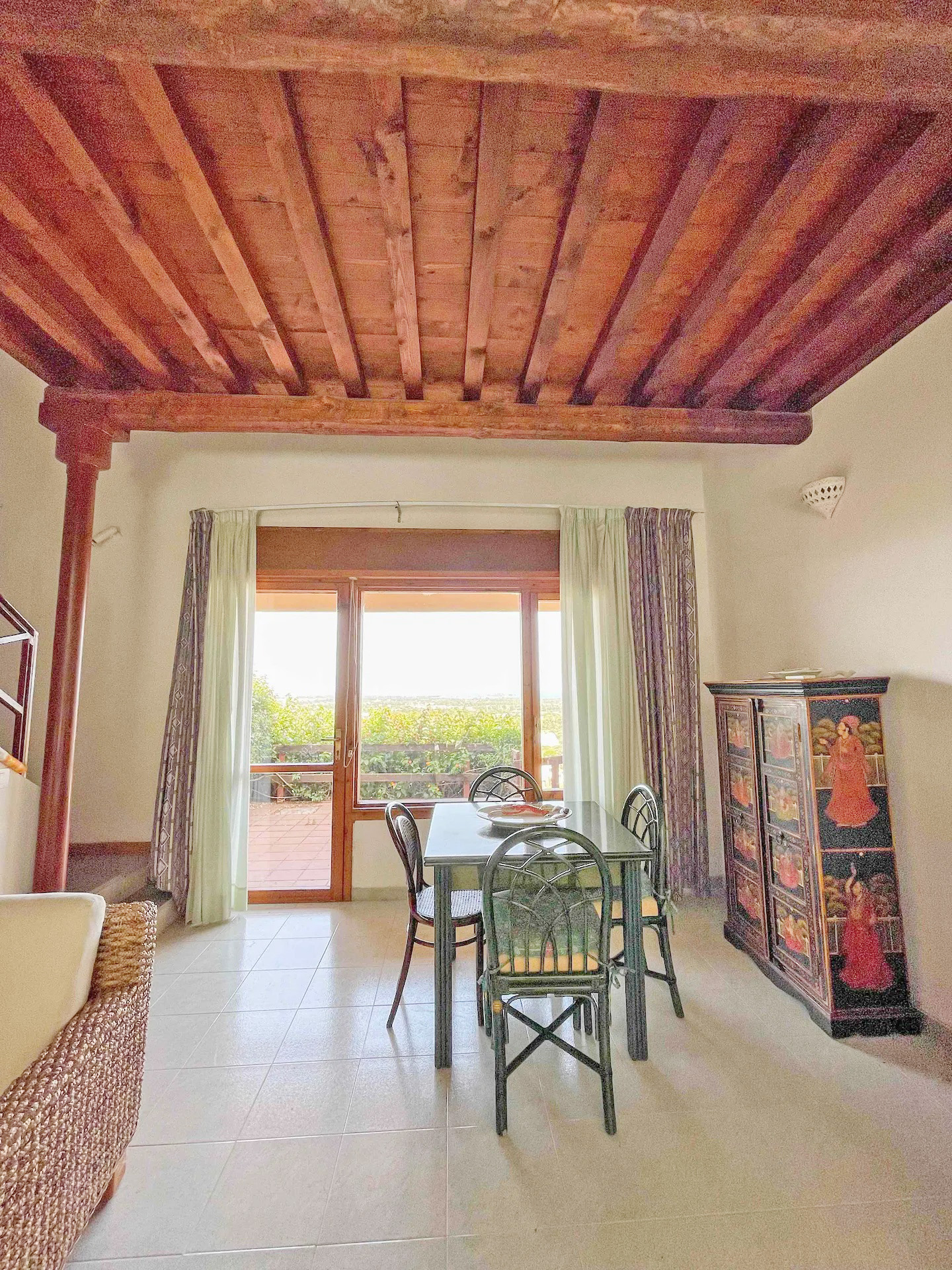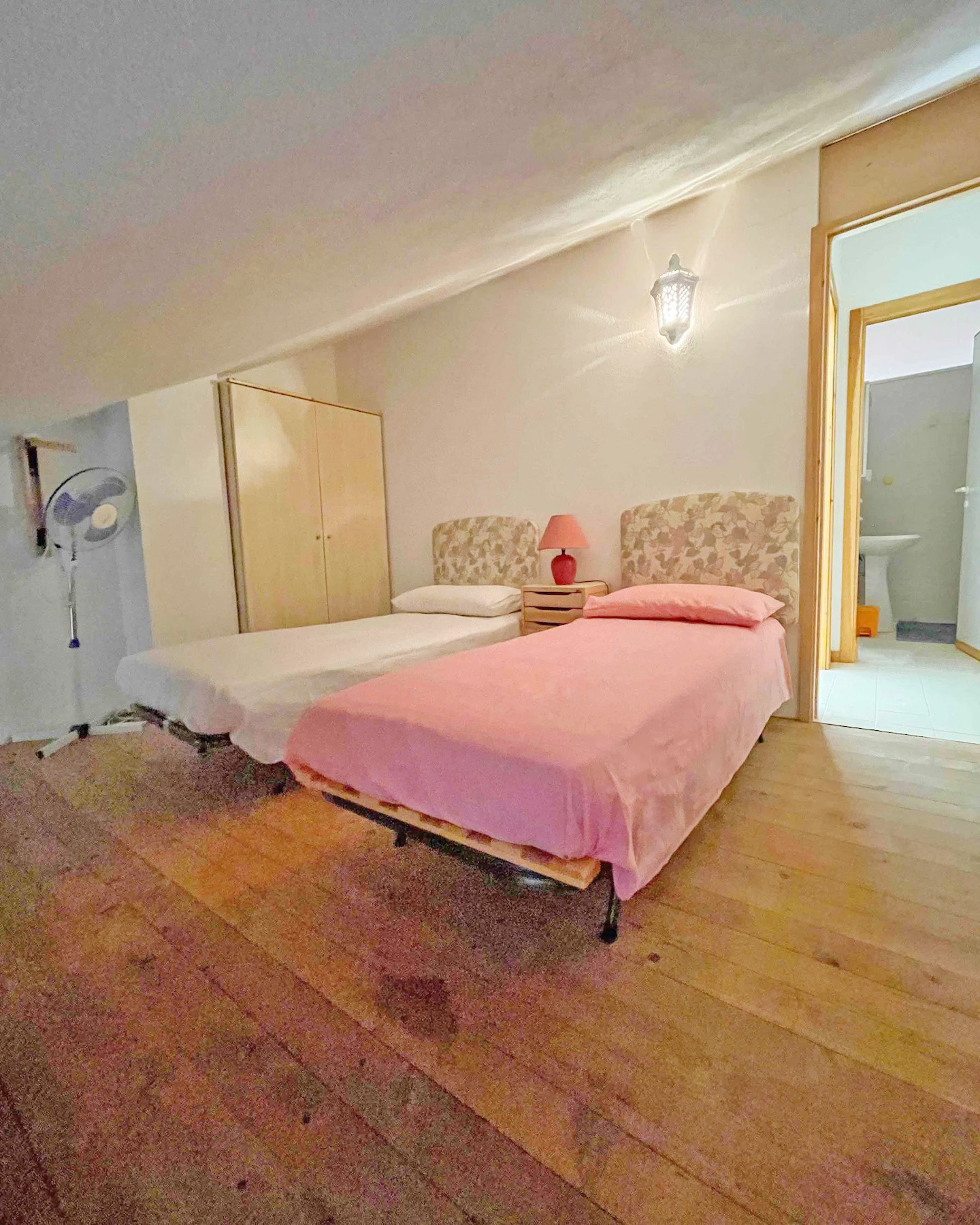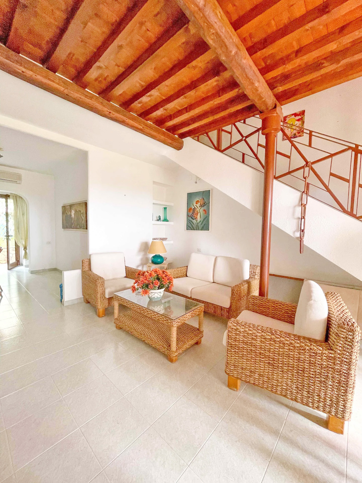 Das Ferienhaus (ca. 90 qm) besteht intern auf 2 Ebenen: Aus einem geräumigen Wohnzimmer mit Kamin und Flachbildschirm-TV und Ausgang zur möblierten Terrasse - eine geräumige haushaltsgerecht ausgestattete Küche mit Geschirrspülmaschine und Ausgang zu einer weiteren Terrasse mit Grillmöglichkeit - 2 Badezimmer mit Dusche/ WC/ Bidet und einem vom Hauptschlafzimmer aus zugänglichem Service mit WC + Waschbecken - 1 Eheschlafzimmer mit einem geräumigen Kleiderschrank - 1 weiteres Schlafzimmer mit zwei Einzelbetten und einem Balkon.