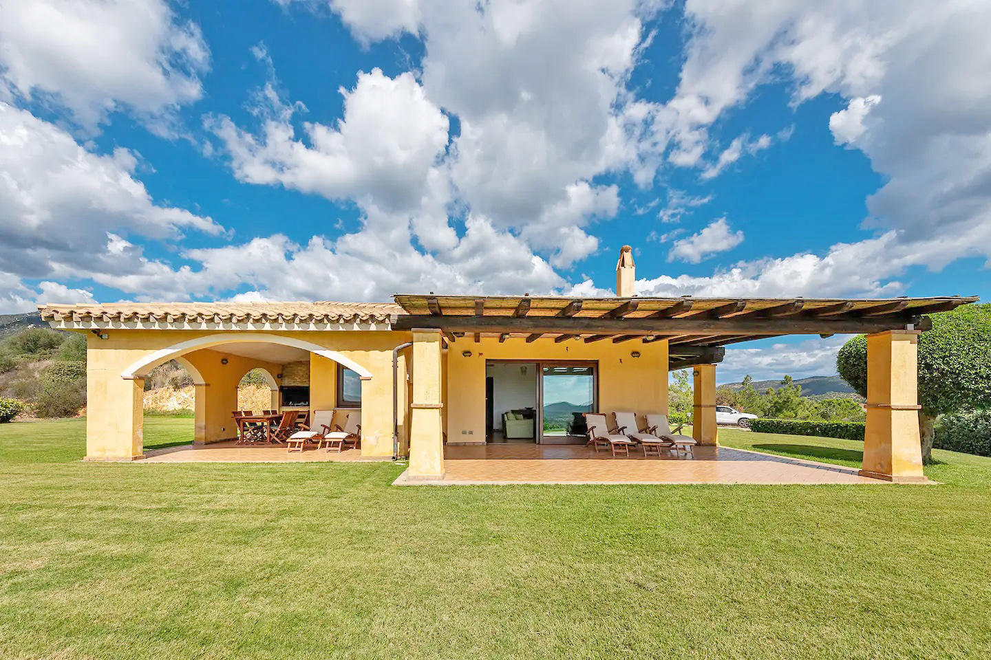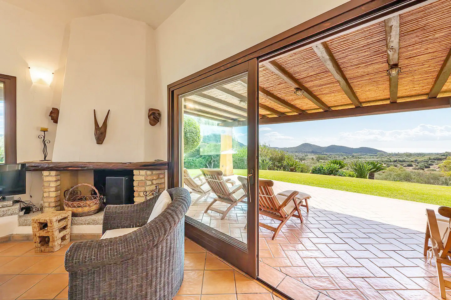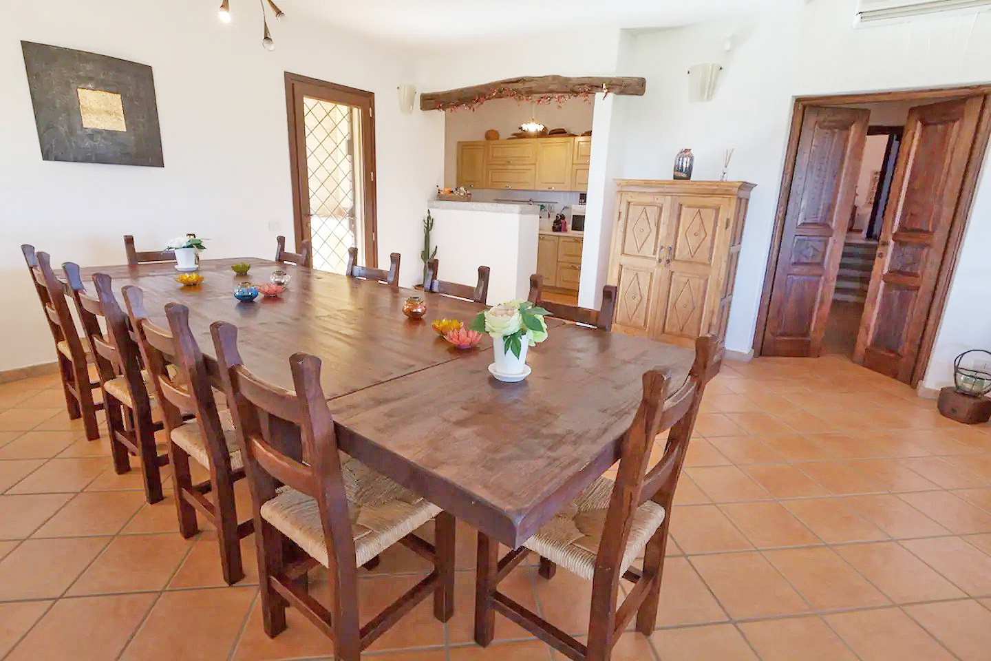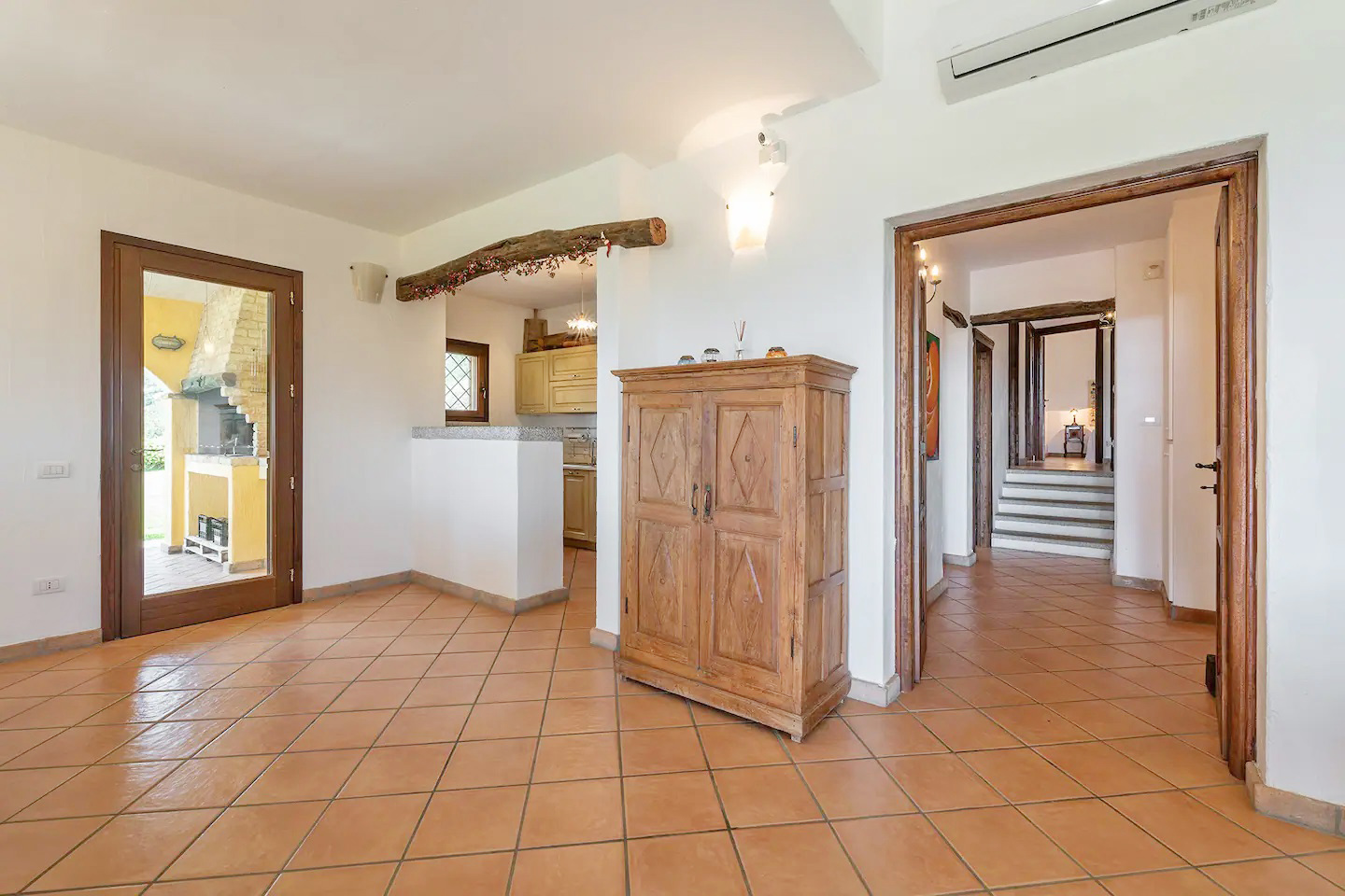 Wunderschöne komfortable Ferienvilla im ländlichen Randgebiet von VILLASIMIUS, an der Südostküste Sardiniens, auf einem Hügel mit herrlichem Blick auf die Berge und das entfernte Meer in sehr ruhiger Alleinlage. Die Villa verfügt über ein sehr großes Wohnzimmer mit Kamin und Essbereich mit angrenzender voll haushaltsgerechter moderner Küche. Es stehen den Gästen 4 Doppelschlafzimmern und 3 Bädern mit Dusche zur Verfügung. Die Villa ist umgeben von einer riesigen gepflegter grünen Gartenfläche mit einer großen überdachten möblierten Terrasse mit Liegen und Grillkamin, die zum Erholen nur einlädt. Die Villa ist neu gebaut und im sardischen Stil komfortabel eingerichtet mit Heizung und Klimaanlage warm/kalt.