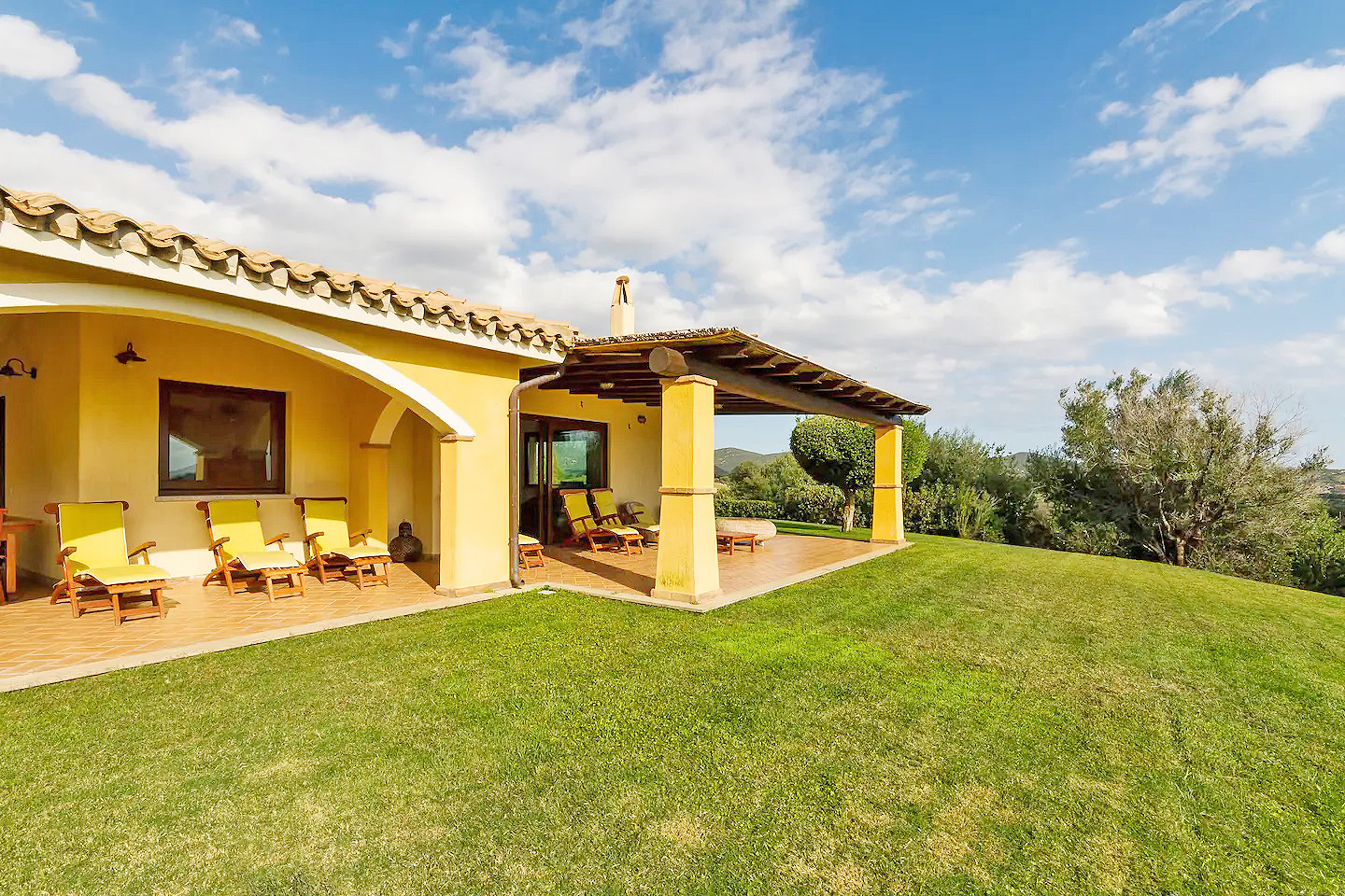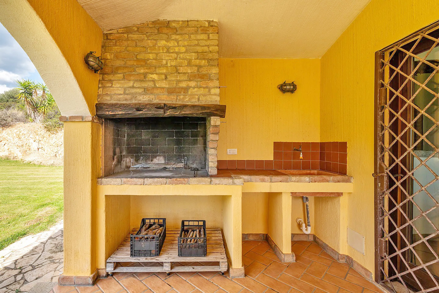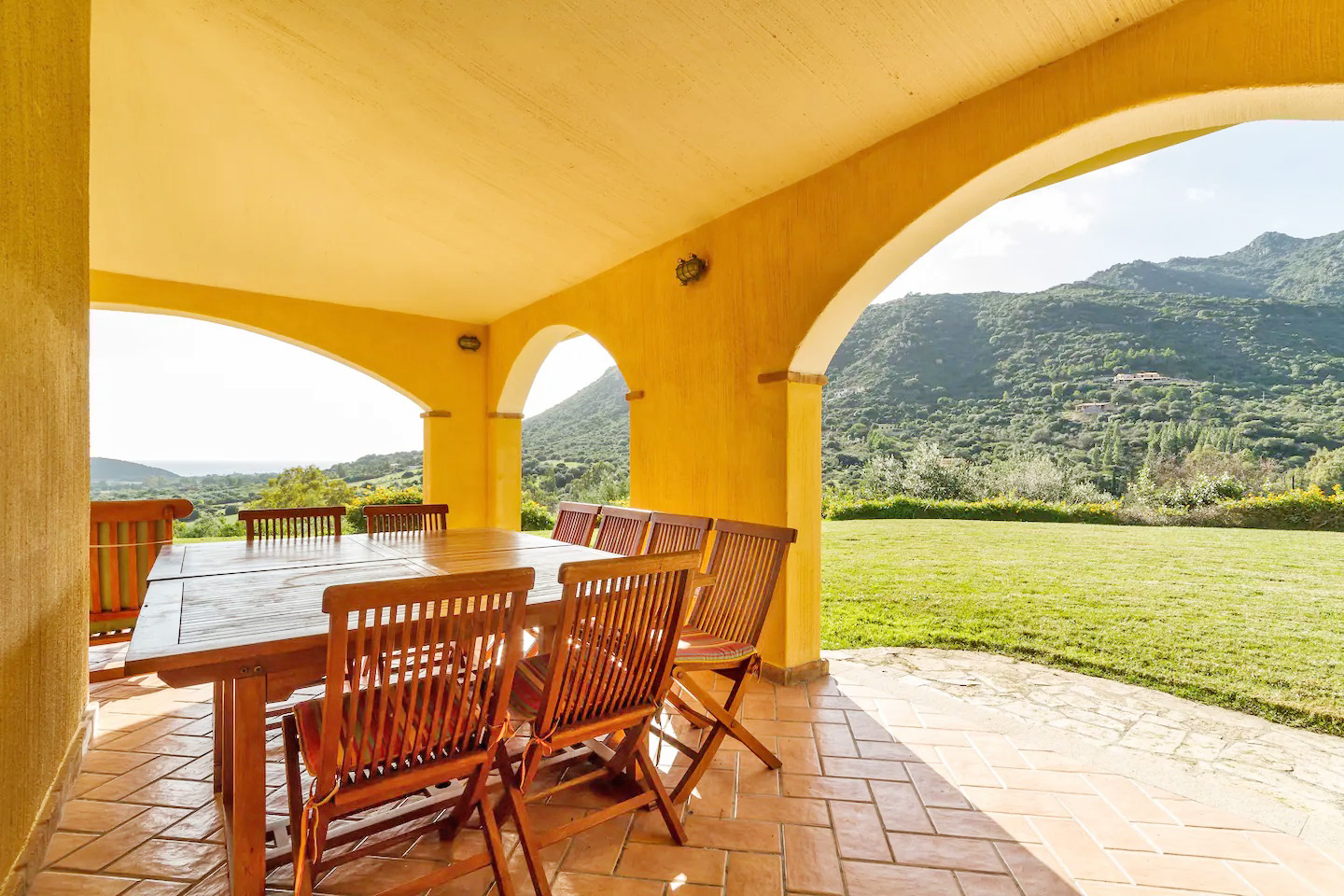 Wunderschöne komfortable Ferienvilla im ländlichen Randgebiet von VILLASIMIUS, an der Südostküste Sardiniens, auf einem Hügel mit herrlichem Blick auf die Berge und das entfernte Meer in sehr ruhiger Alleinlage. Die Villa verfügt über ein sehr großes Wohnzimmer mit Kamin und Essbereich mit angrenzender voll haushaltsgerechter moderner Küche. Es stehen den Gästen 4 Doppelschlafzimmern und 3 Bädern mit Dusche zur Verfügung. Die Villa ist umgeben von einer riesigen gepflegter grünen Gartenfläche mit einer großen überdachten möblierten Terrasse mit Liegen und Grillkamin, die zum Erholen nur einlädt. Die Villa ist neu gebaut und im sardischen Stil komfortabel eingerichtet mit Heizung und Klimaanlage warm/kalt.