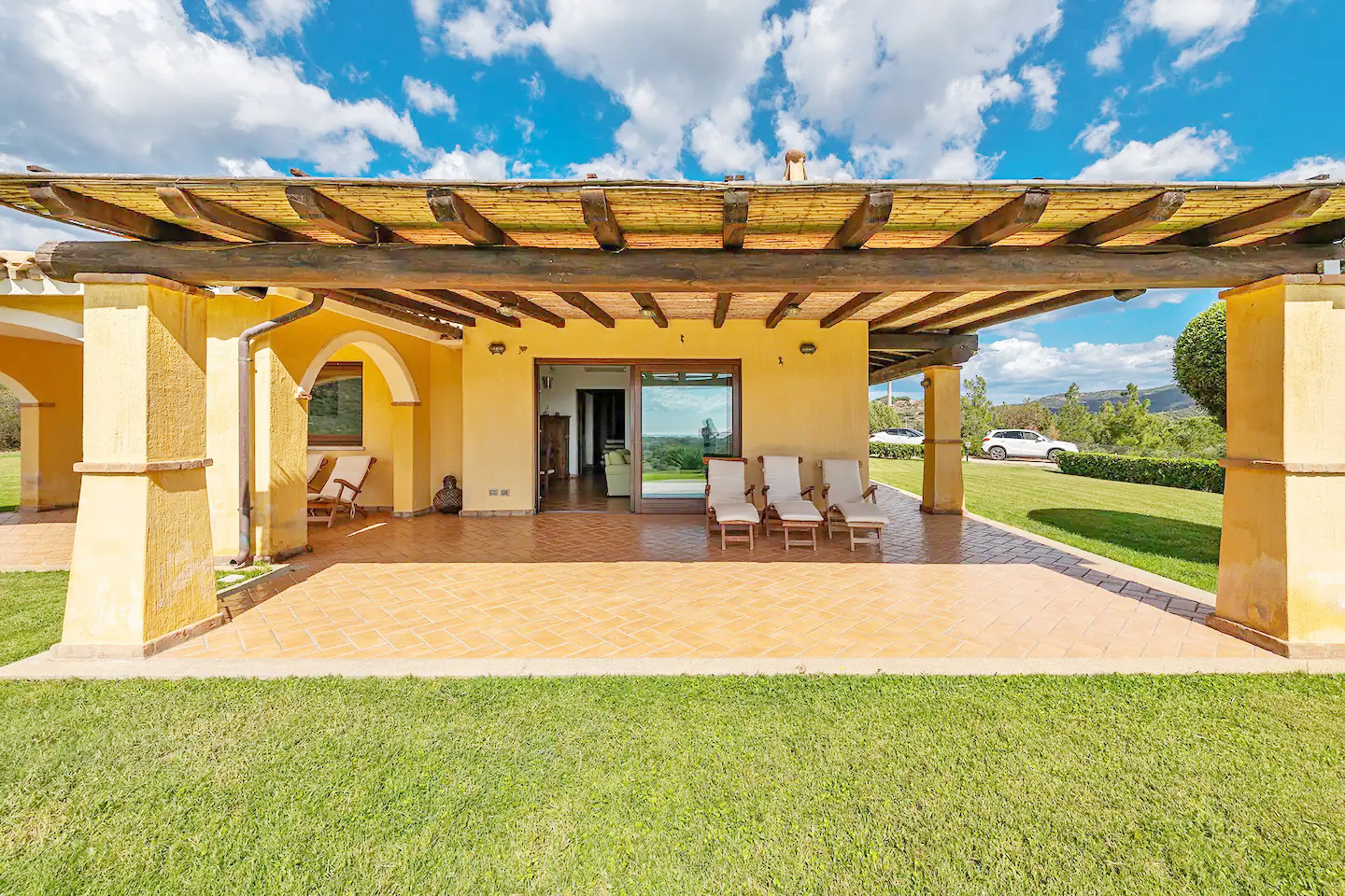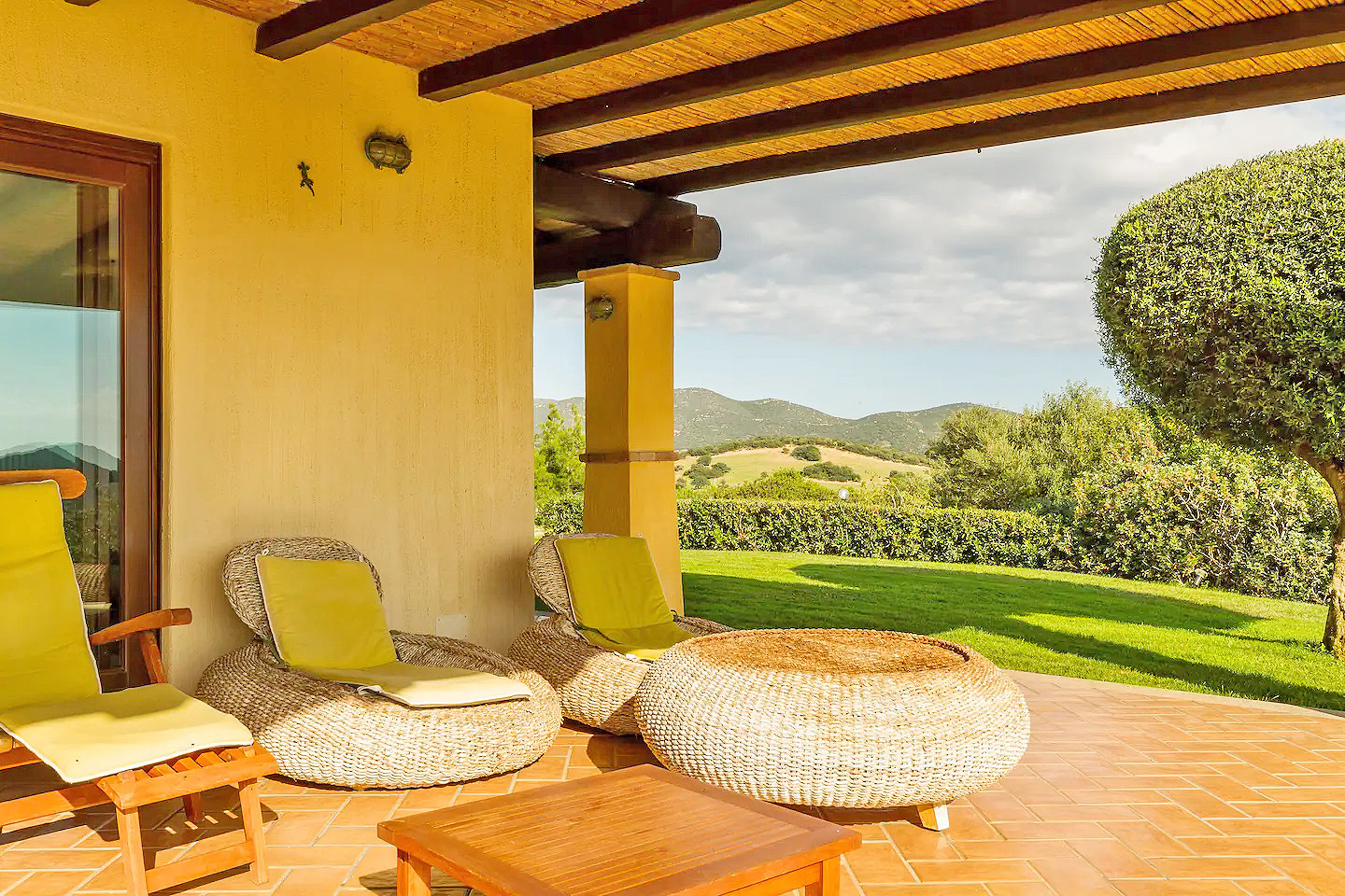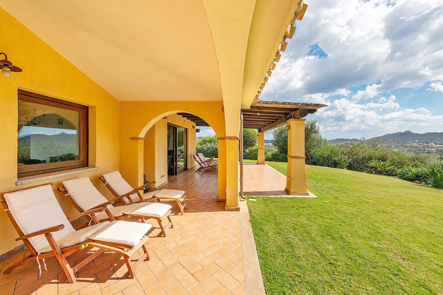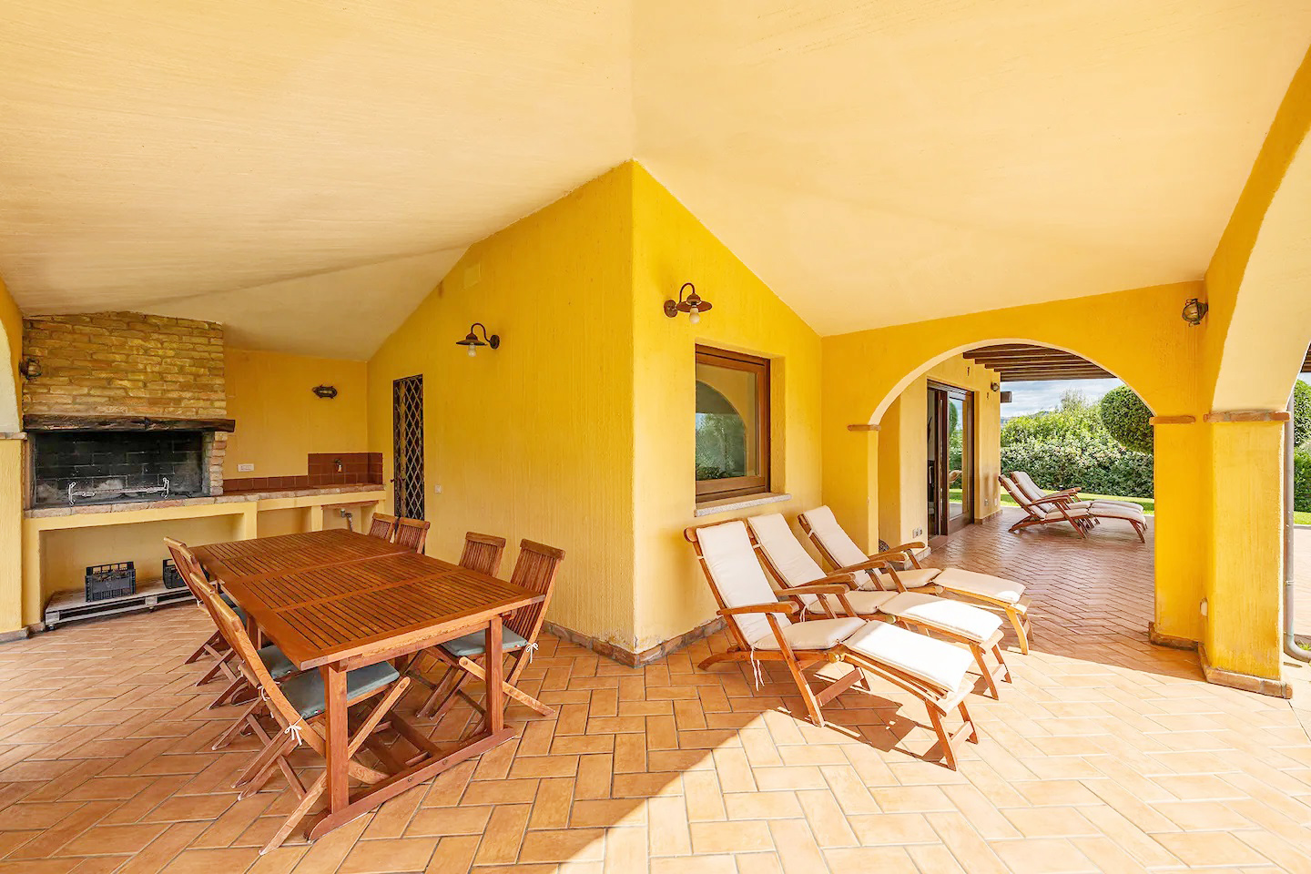Wunderschöne komfortable Ferienvilla im ländlichen Randgebiet von VILLASIMIUS, an der Südostküste Sardiniens, auf einem Hügel mit herrlichem Blick auf die Berge und das entfernte Meer in sehr ruhiger Alleinlage. Die Villa verfügt über ein sehr großes Wohnzimmer mit Kamin und Essbereich mit angrenzender voll haushaltsgerechter moderner Küche. Es stehen den Gästen 4 Doppelschlafzimmern und 3 Bädern mit Dusche zur Verfügung. Die Villa ist umgeben von einer riesigen gepflegter grünen Gartenfläche mit einer großen überdachten möblierten Terrasse mit Liegen und Grillkamin, die zum Erholen nur einlädt. Die Villa ist neu gebaut und im sardischen Stil komfortabel eingerichtet mit Heizung und Klimaanlage warm/kalt.