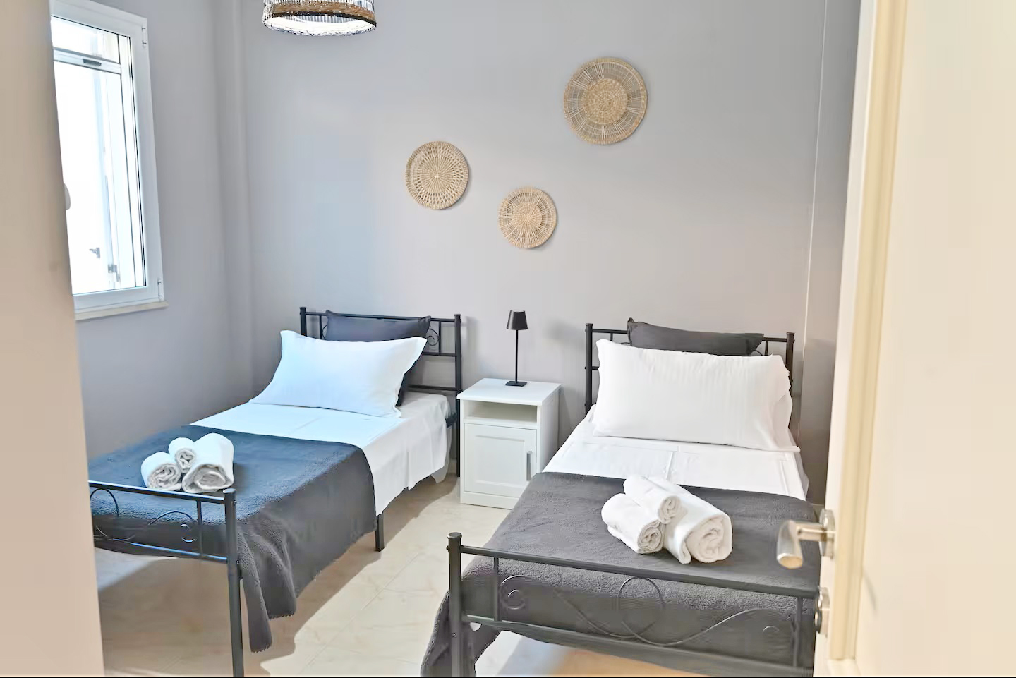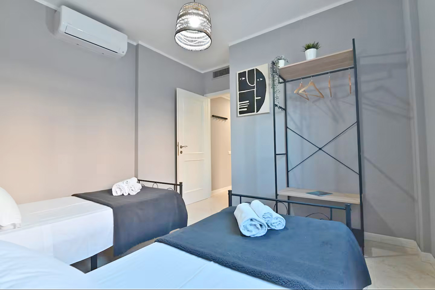 Offener Wohn-/ Essbereich mit separater komplett haushaltsgerecht eingerichteter Küche - 1 Schlafzimmer mit Ehebetten - 1 Schlafzimmer mit Einzelbetten die zu Ehebetten zusammengestellt werden können - 1 Badezimmer mit Dusche/ WC/ Bidet – 1 weiteres Badezimmer mit Waschtisch/ WC/ Waschmaschine - ein kleiner möblierte Balkon mit schöner Aussicht.