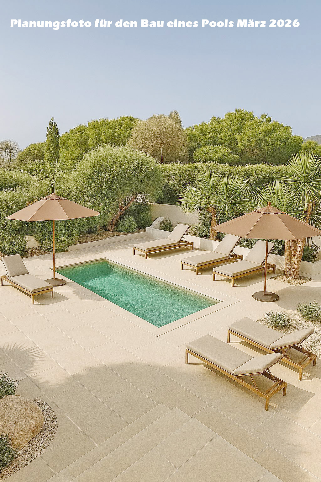 Der Bau eines Swimmingpools ist bei der Villa geplant zur Fertigstellung für März 2026 (Planungsfoto ist beigefügt).