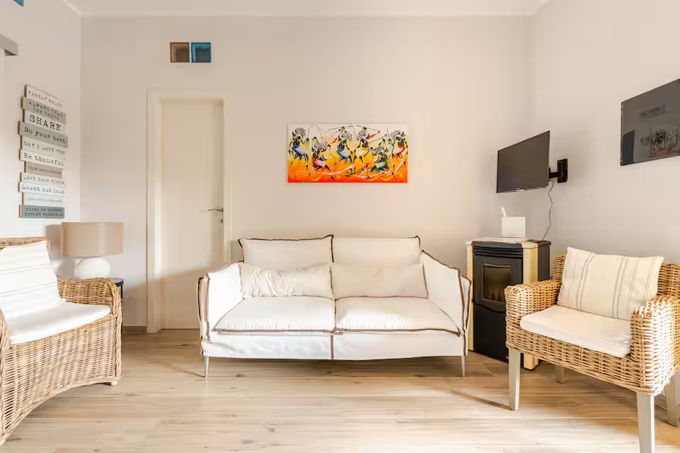 Zusätzliche Ausstattung: TV-SAT-Anlage - WIFI-Internet - Waschmaschine - zentrale Klimaanlage - Kühl-/ Gefrierkombination - Geschirrspülmaschine - Kaffeemaschine - Wasserkocher - Mikrowelle - Wäscheständer - Föhn - Terrasse mit Gartenmöbel und Grillmöglichkeit - kostenlose Autostellplätze in der Nähe an der Straße.