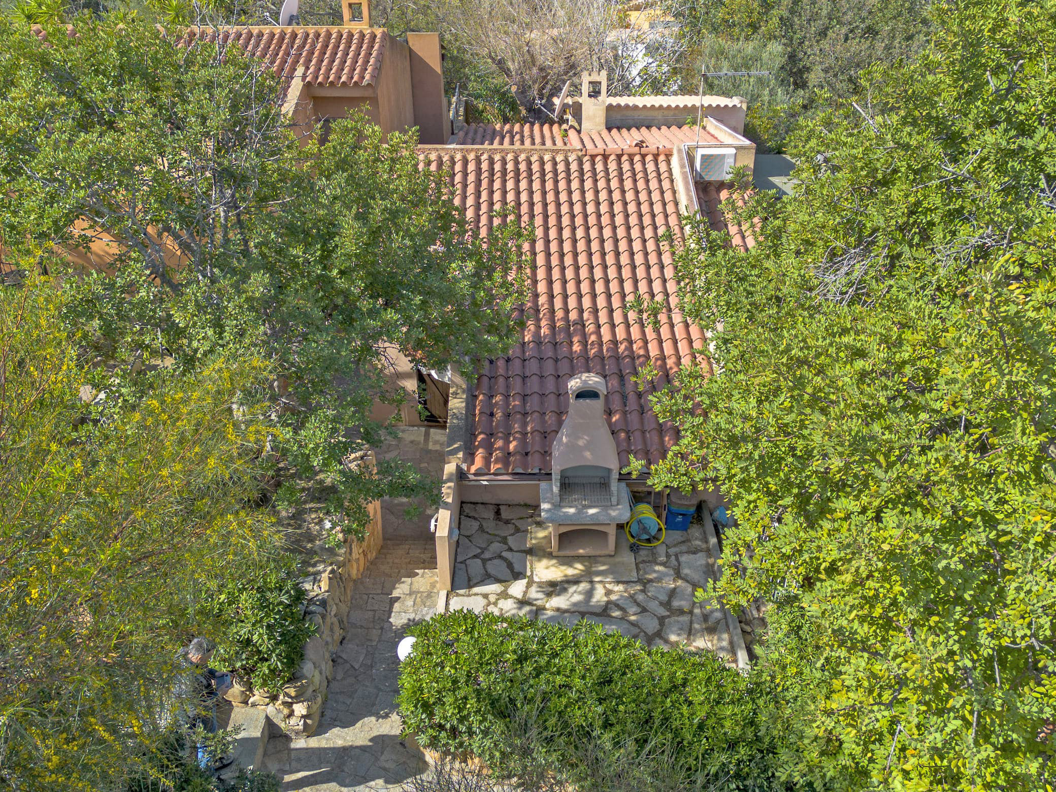 Die Räumlichkeiten des Hauses (ca. 75 qm) sind auf einer Ebenen aufgeteilt und bieten eine Beherbergung für max. 4 Erw. + 1 Kleinkind. Der offene Wohnbereich bietet: Wohn-/ Essraum mit offenem Kamin mit Ausgang zum überdachten und möblierten Terrassenbereich mit Grillkamin – haushaltsgerecht ausgestattete Küchenzeile - 1 Schlafzimmer mit Ehebetten - 1 Schlafzimmer mit franz. Ehebett – 1 Schlafzimmer mit Einzelbett - 1 Badezimmer mit Dusche/ WC/ Bidet. Schlafzimmer und Wohnbereich sind mit Klimaanlage ausgestattet.