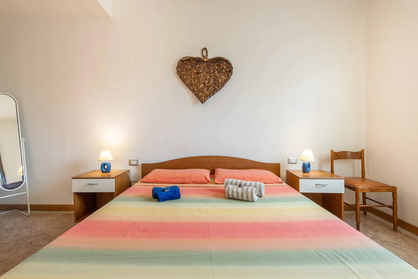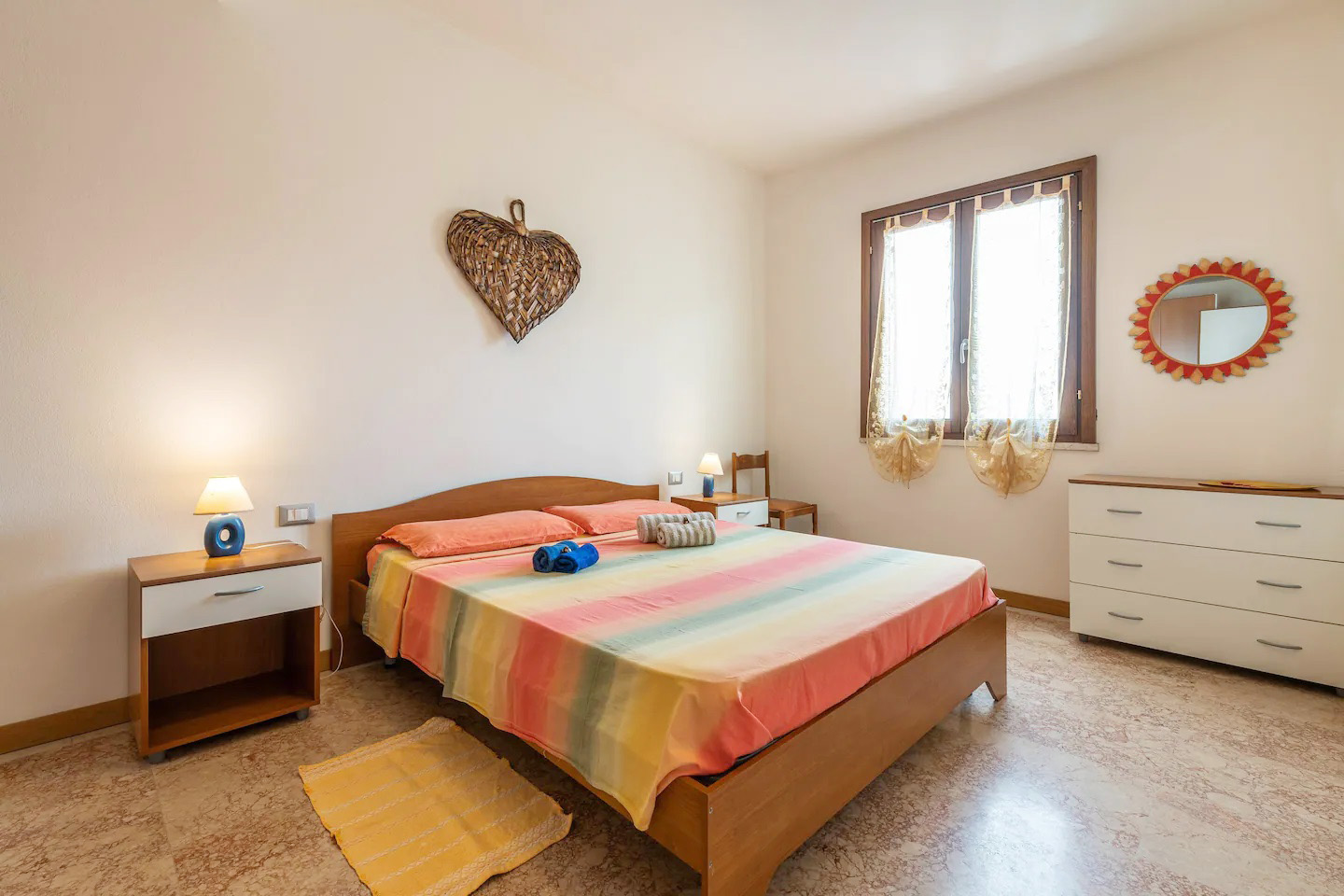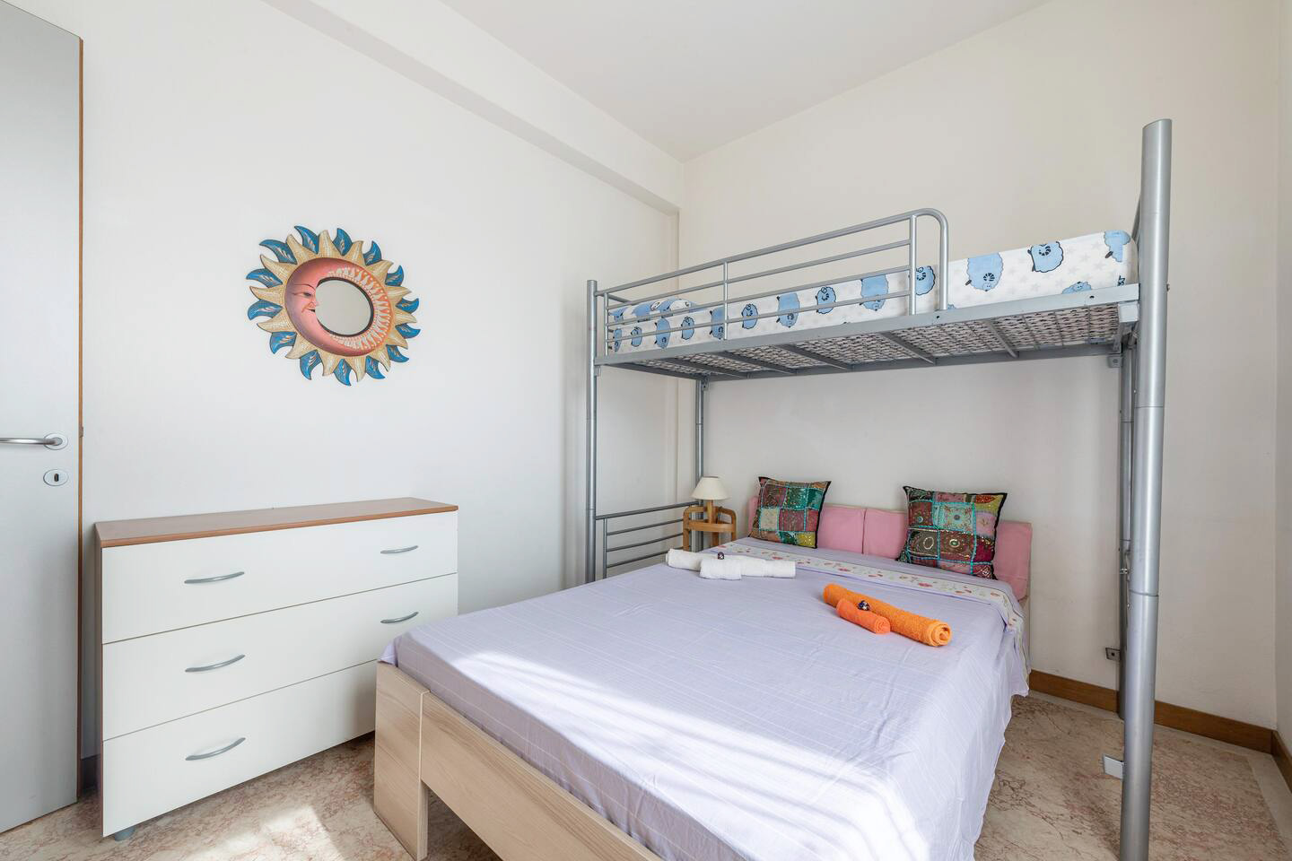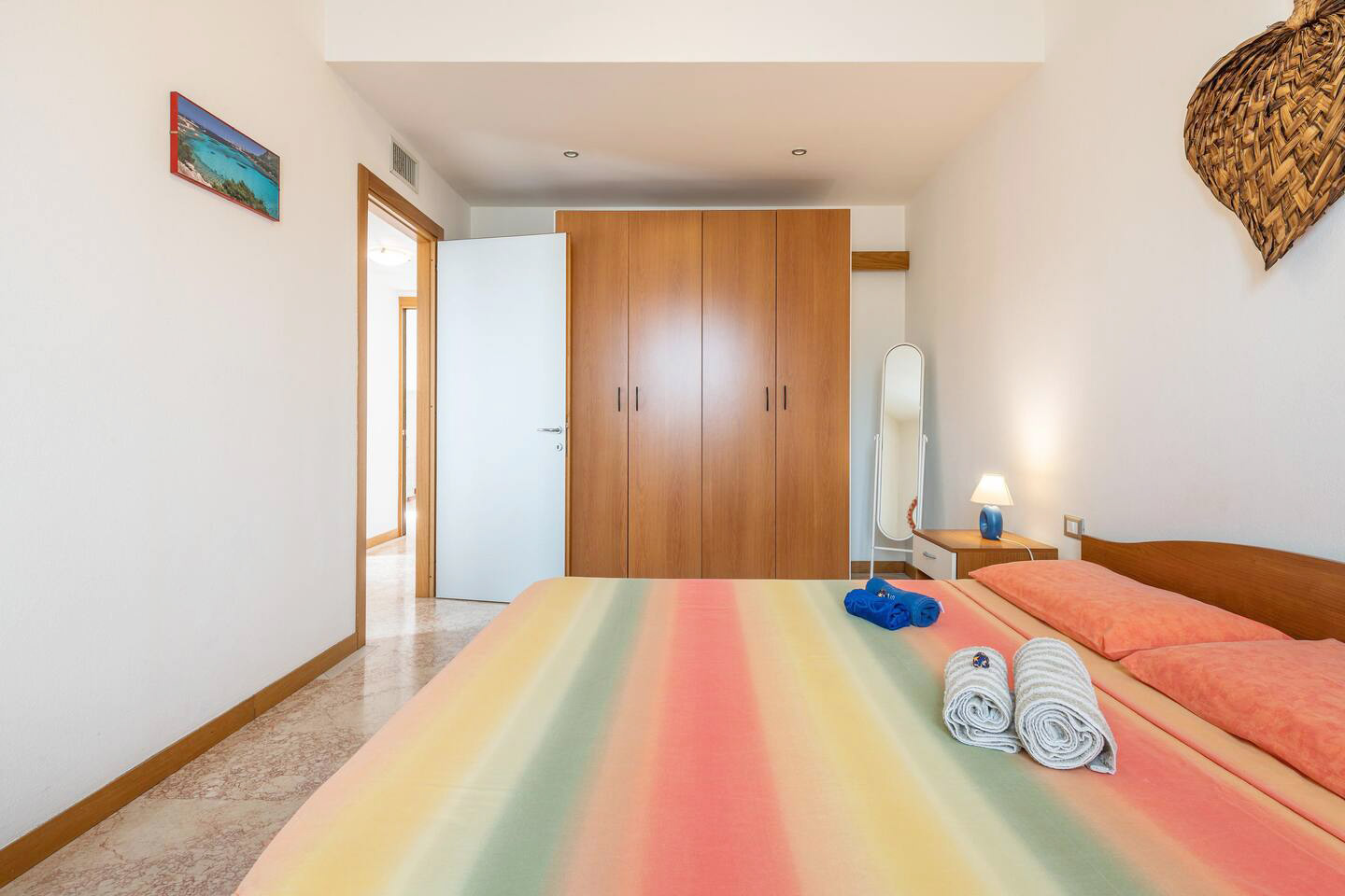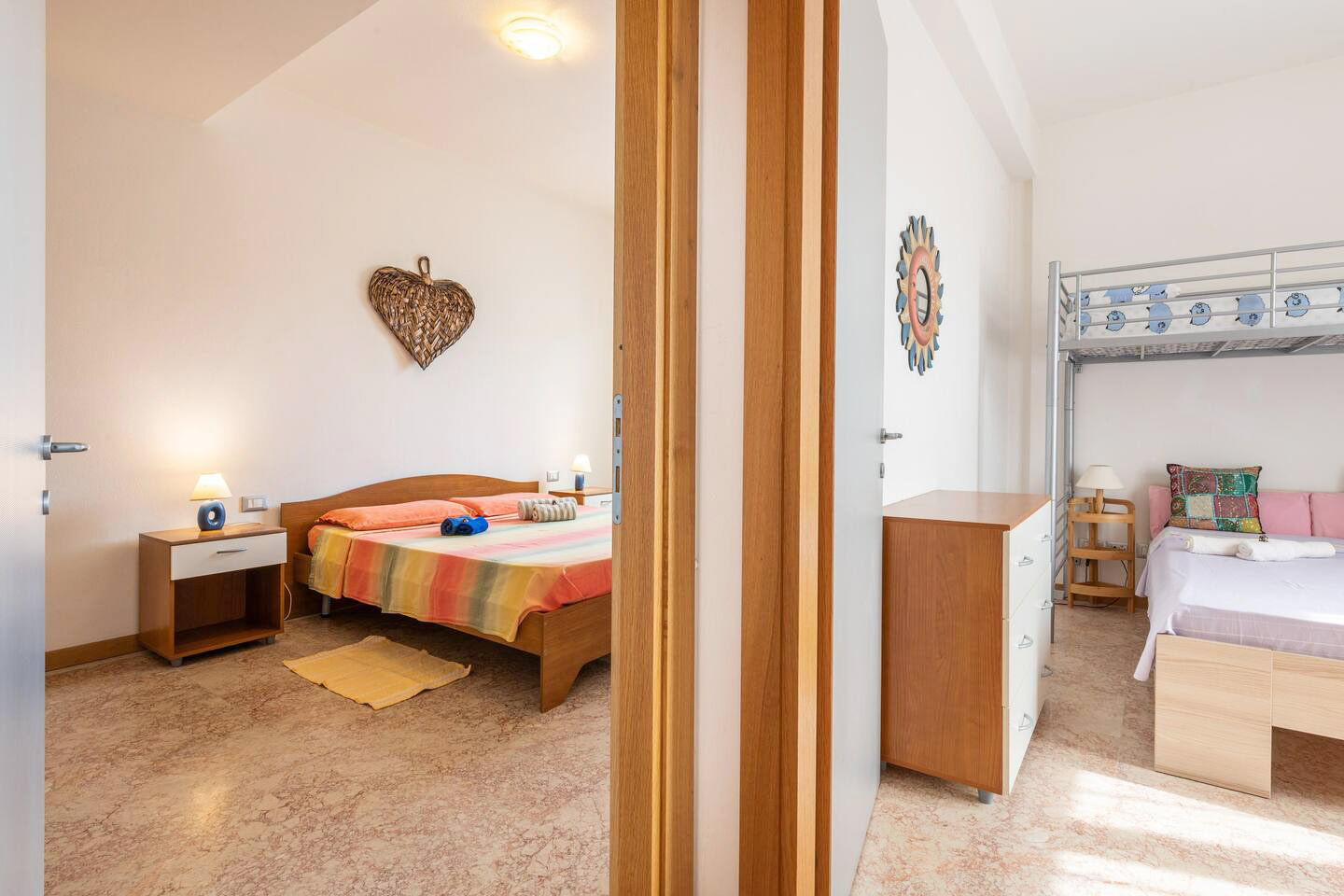 Die Wohnung (ca. 72 qm) ist komplett ausgestattet und verfügt über einen großen Wohn-/ Essraum mit integrierter Küche - 1 Schlafzimmer mit Ehebetten - 1 Schlafzimmer mit 3 Betten - 1 Bad/ Dusche/ WC/ Bidet - für max. 5 Personen.
