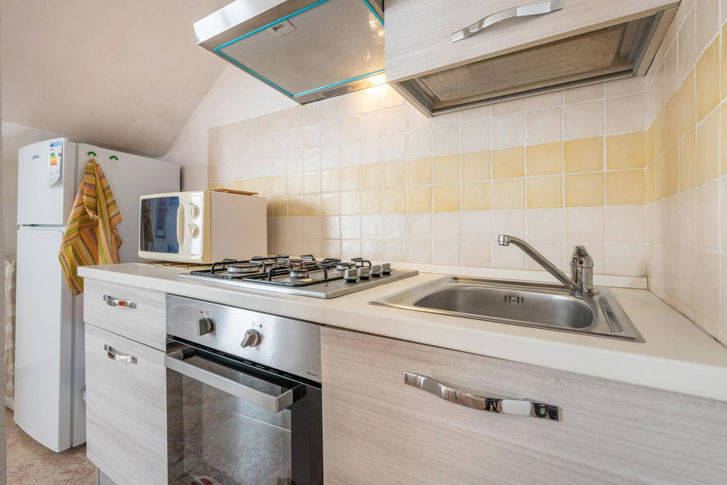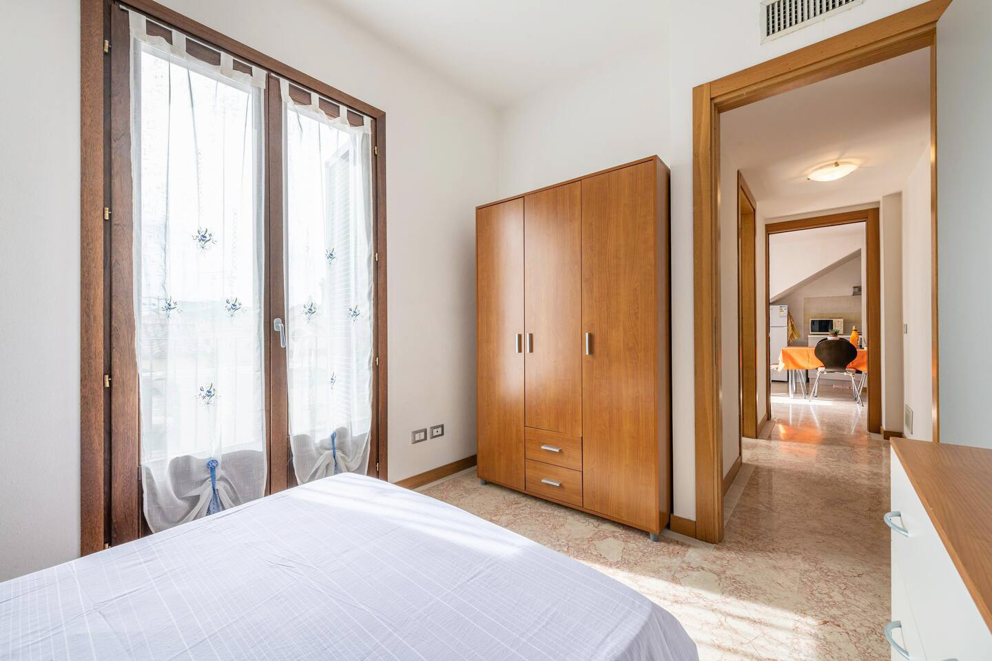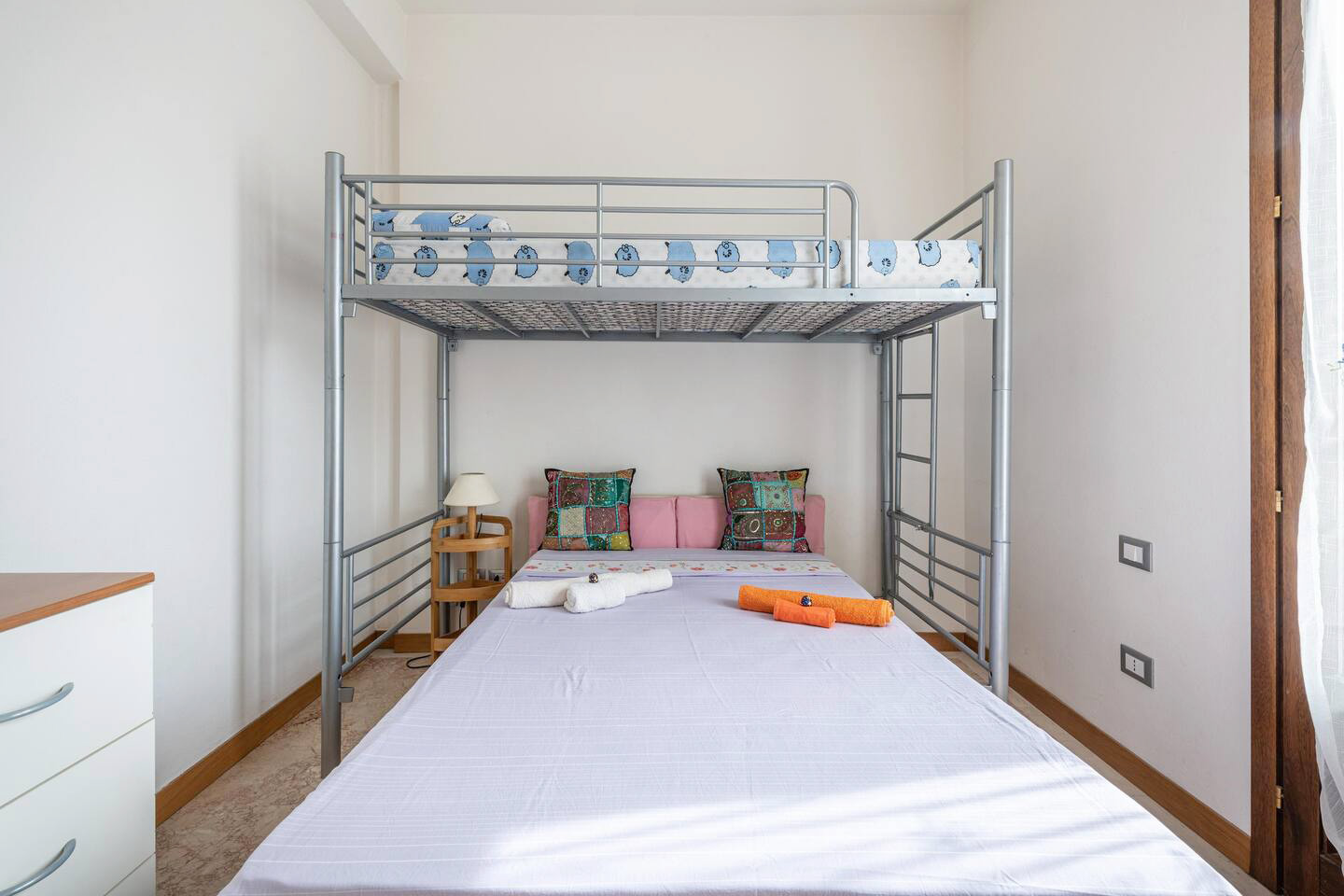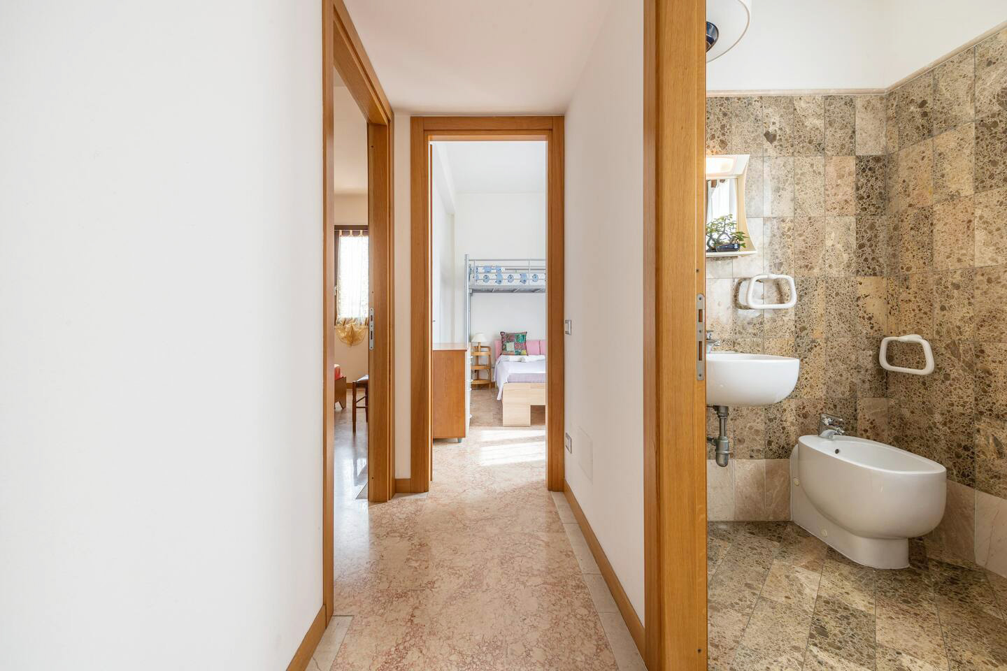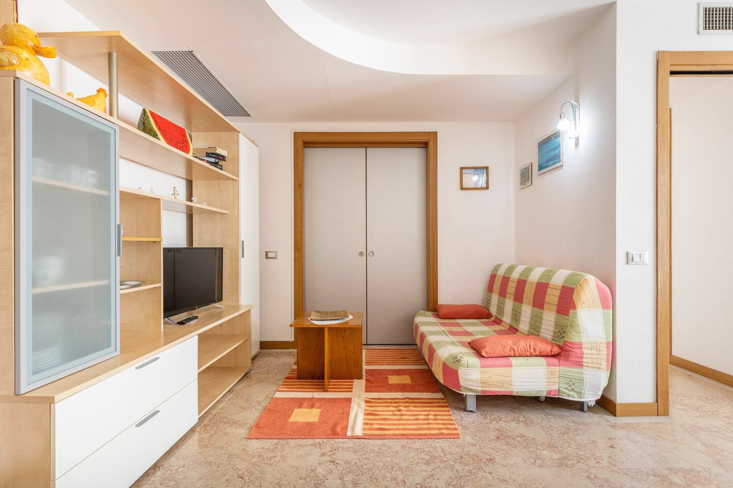 Die Wohnung (ca. 72 qm) ist komplett ausgestattet und verfügt über einen großen Wohn-/ Essraum mit integrierter Küche - 1 Schlafzimmer mit Ehebetten - 1 Schlafzimmer mit 3 Betten - 1 Bad/ Dusche/ WC/ Bidet - für max. 5 Personen.