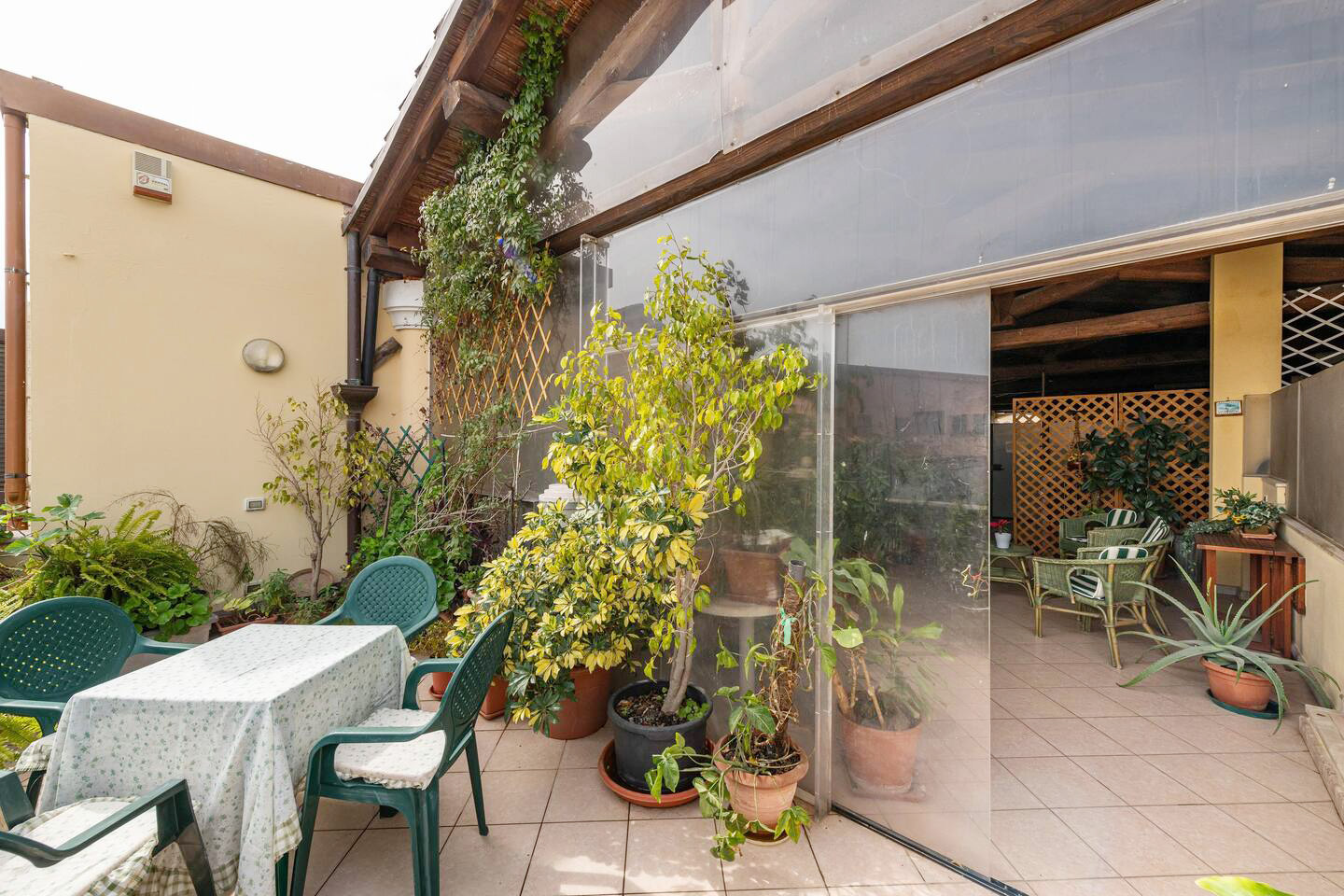 Möblierter Balkon mit Sonnenschirm