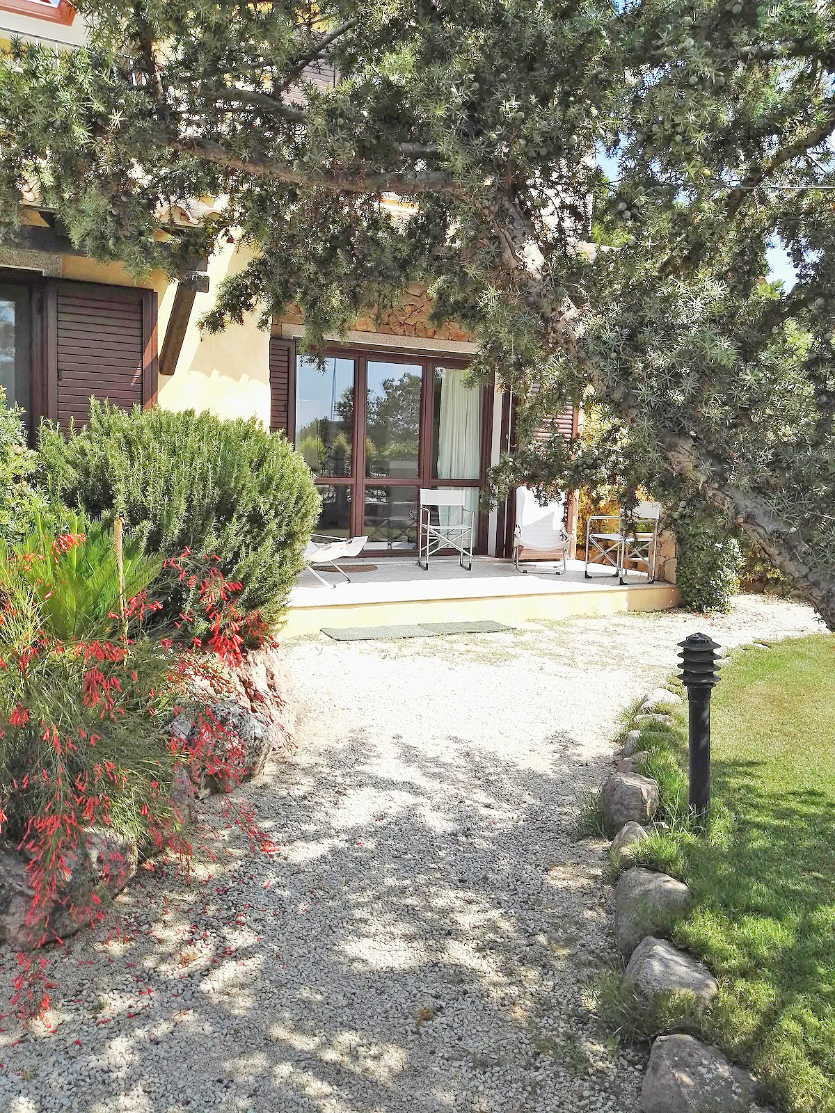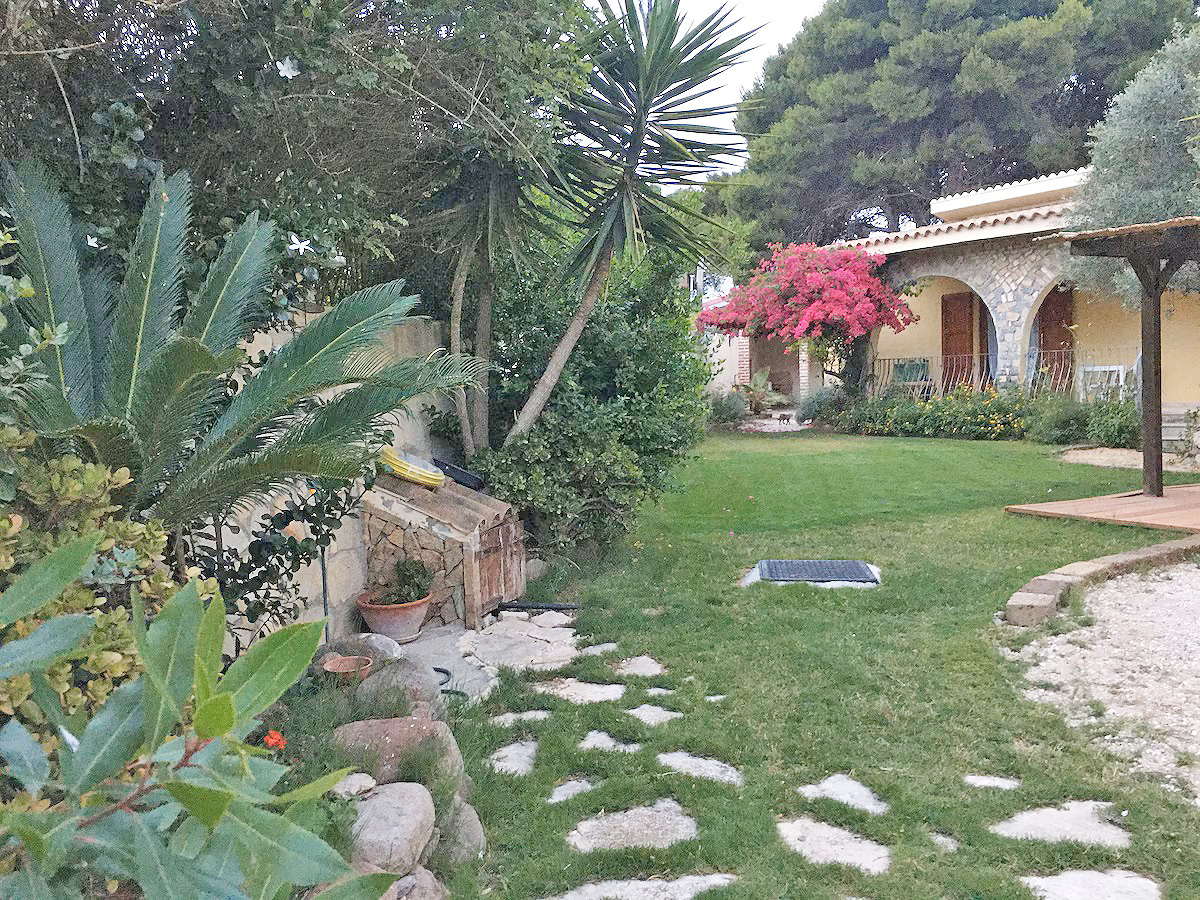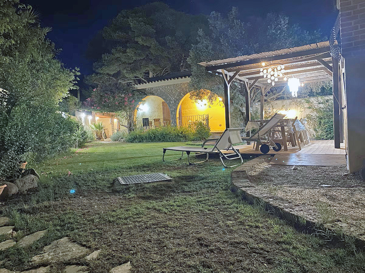 In nächster Nähe zum kristallklaren Meer und weitläufigem Sandstrand mit den weißen Dünen von PORTO-PINO - umgeben von einem großen eingezäunten privaten Grundstück - befindet sich dieses großzügige separate und freistehende Ferienhaus „Pinetto“. Das Ferienhaus befindet sich direkt im touristischen Zentrum von PORTO-PINO in fußläufiger Nähe von Restaurants, Pizzerien, Bars, Eisdielen und Supermarkt (teils nur saisonbedingt geöffnet). Der große familiäre Sandstrand mit dem flachen Gewässer - Wassersportmöglichkeiten, Bars, Restaurant - ist in ca. 5 Minuten Fußweg (ca. 200 m) schnell zu erreichen.
