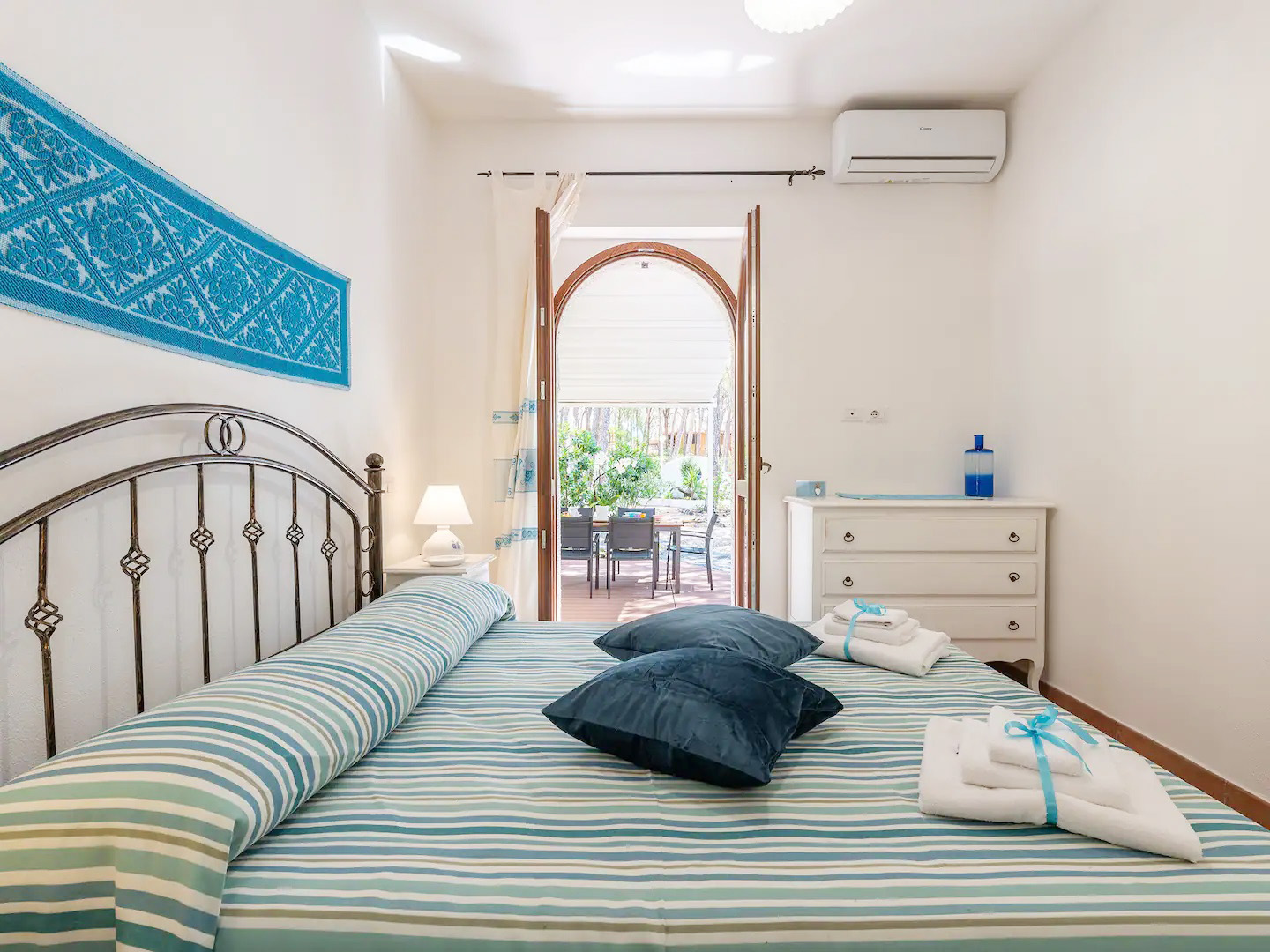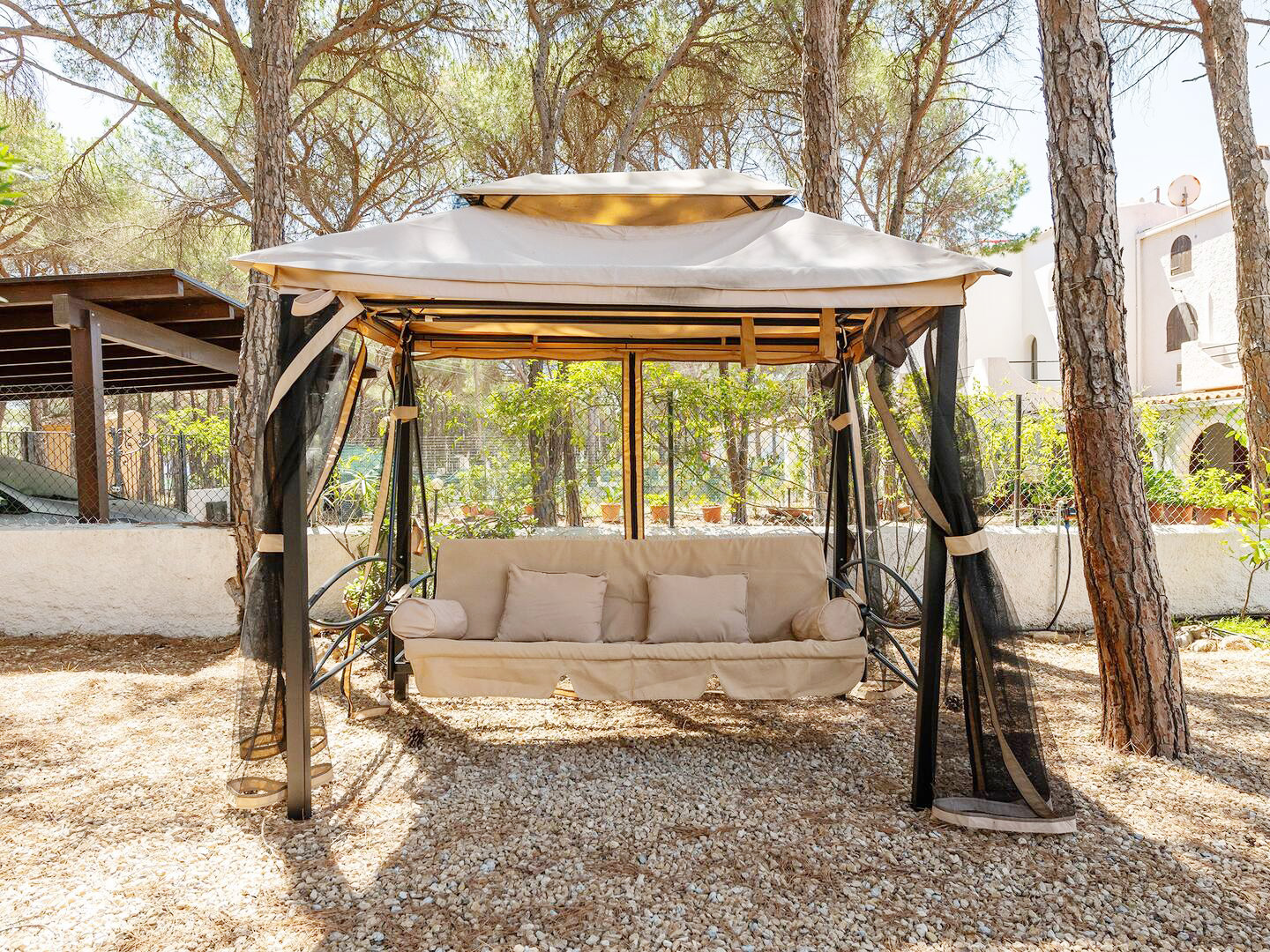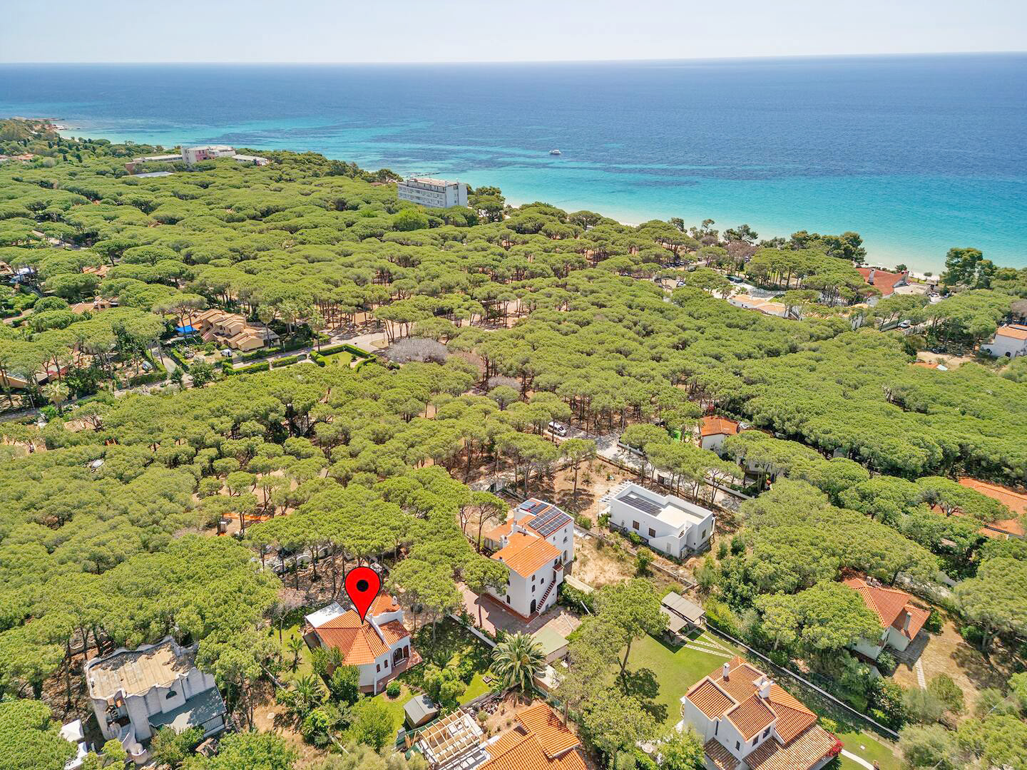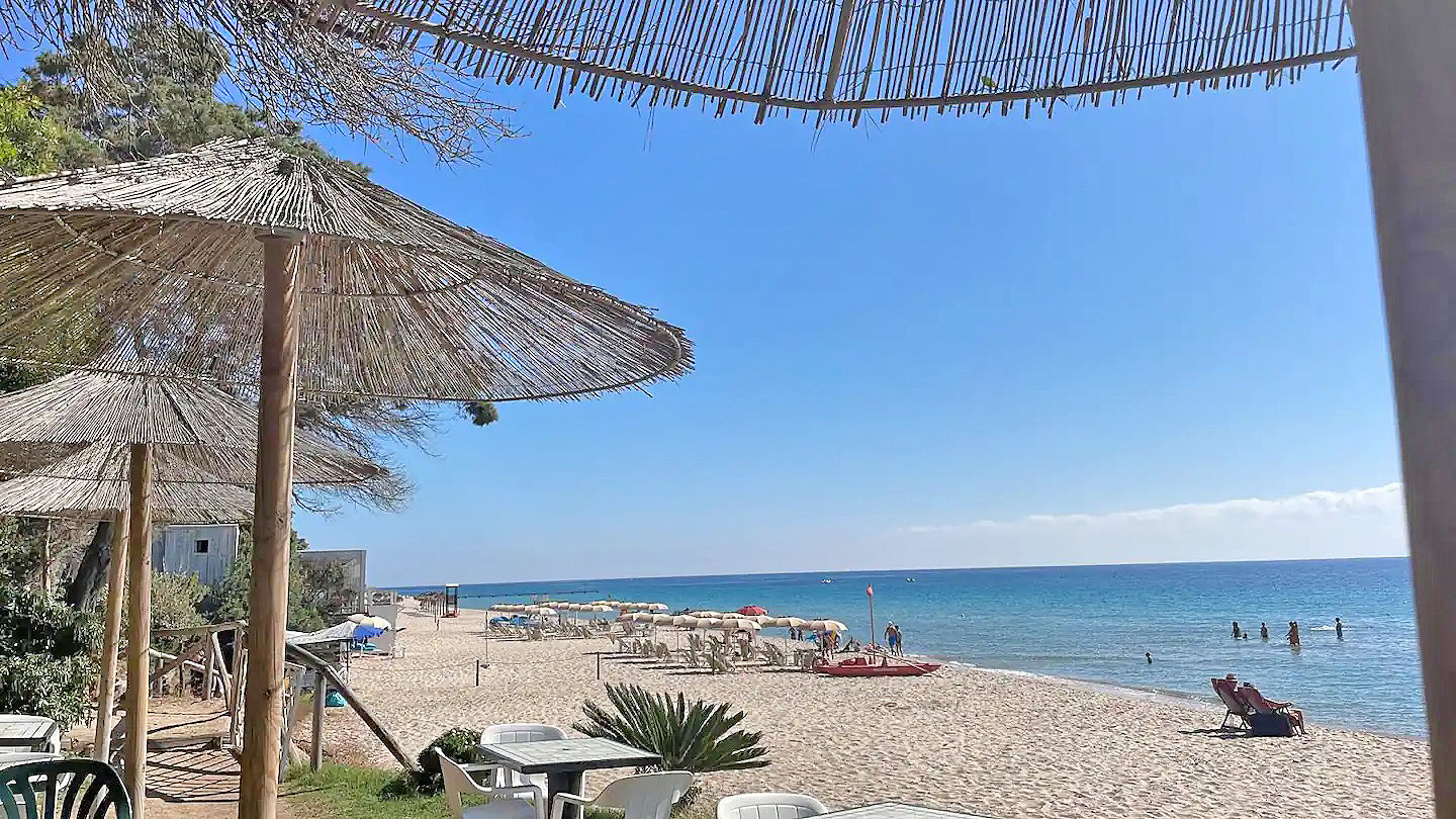 Das Ferienhaus liegt nur ca. 200 m zu Fuß von einem traumhaften weitläufigen weißen Sandstrand und kristallklarem Meer entfernt und bietet einen schönen Spaziergang durch die von Bäumen gesäumten Alleen der Wohnanlage.