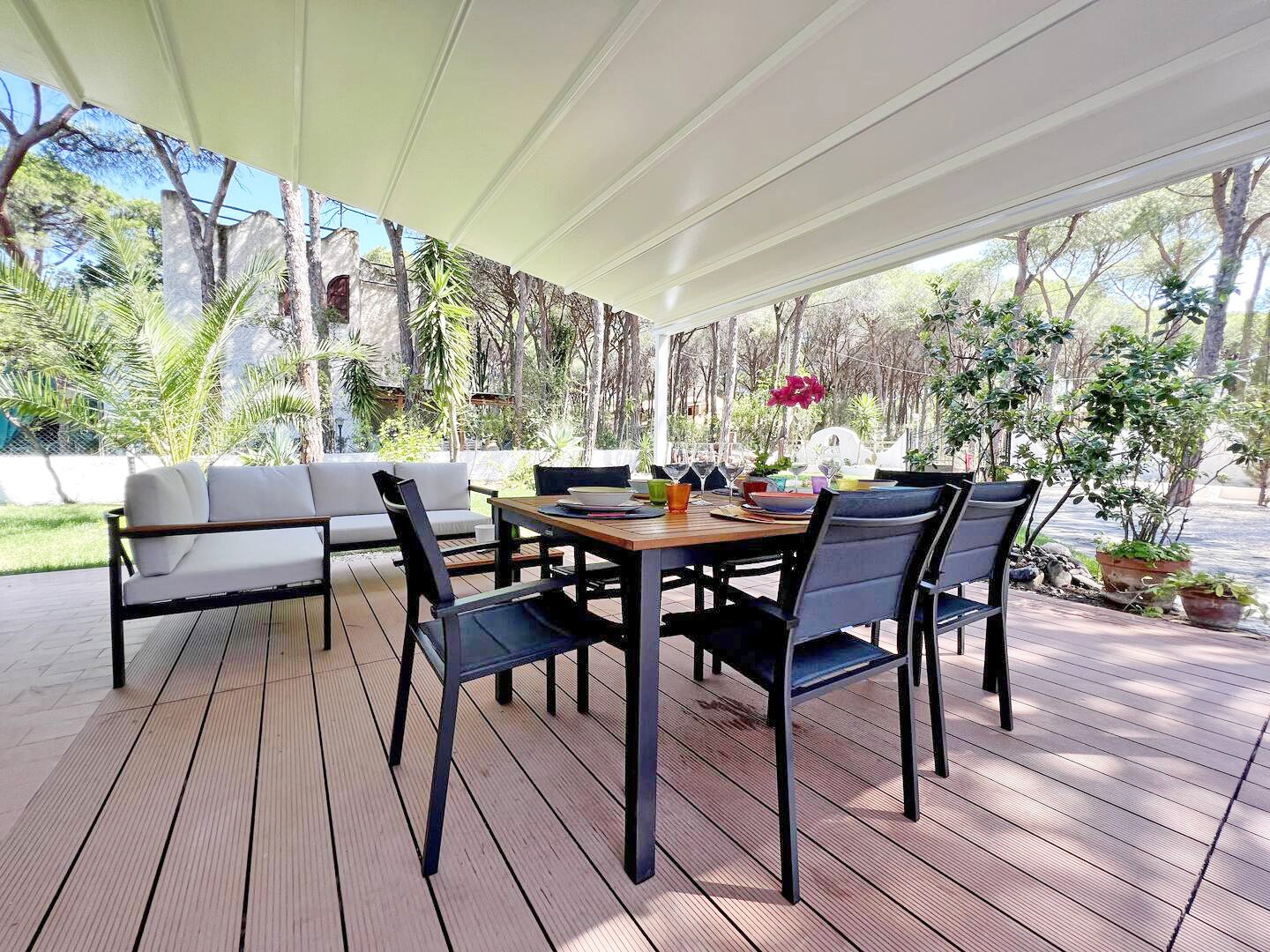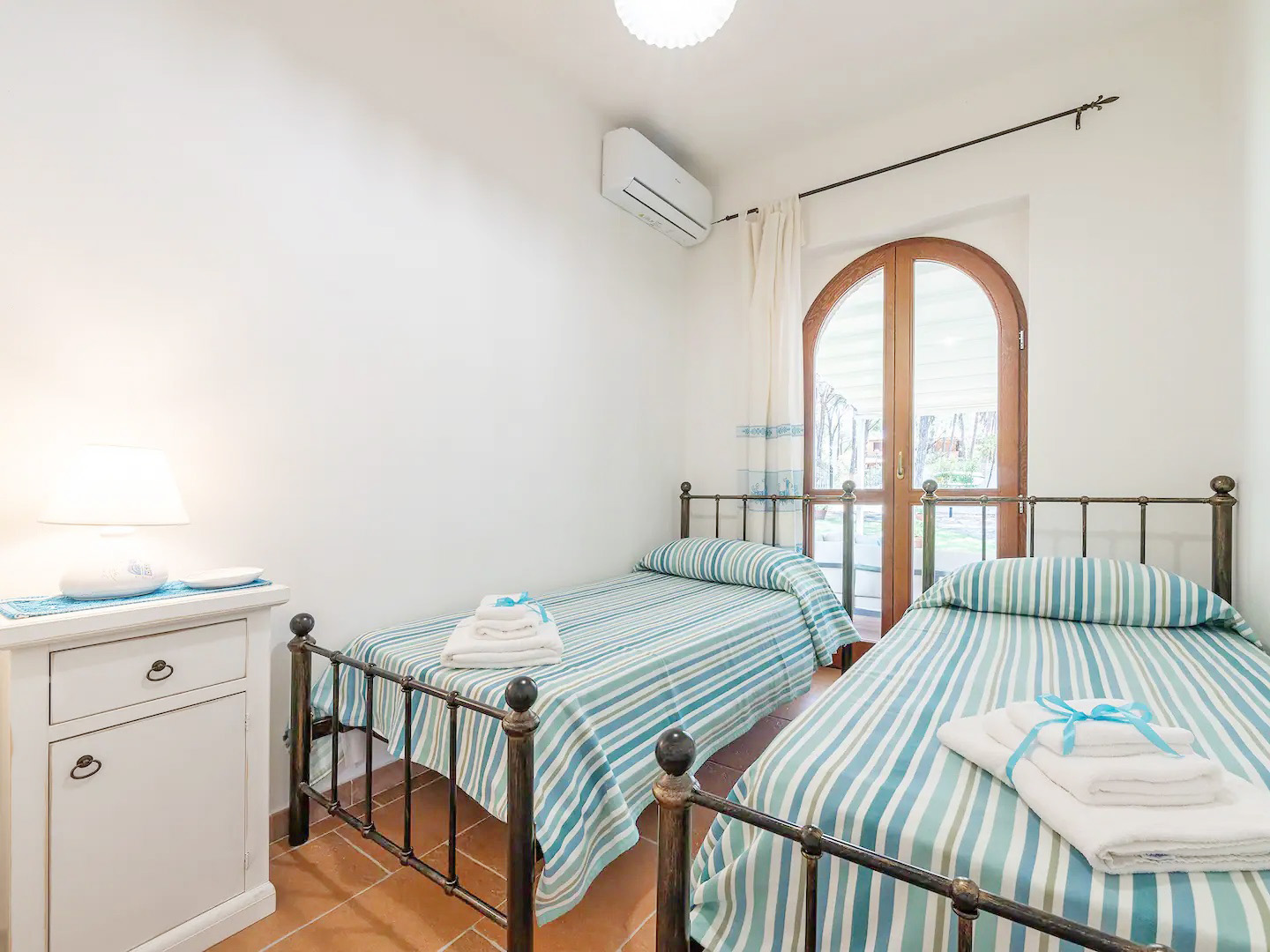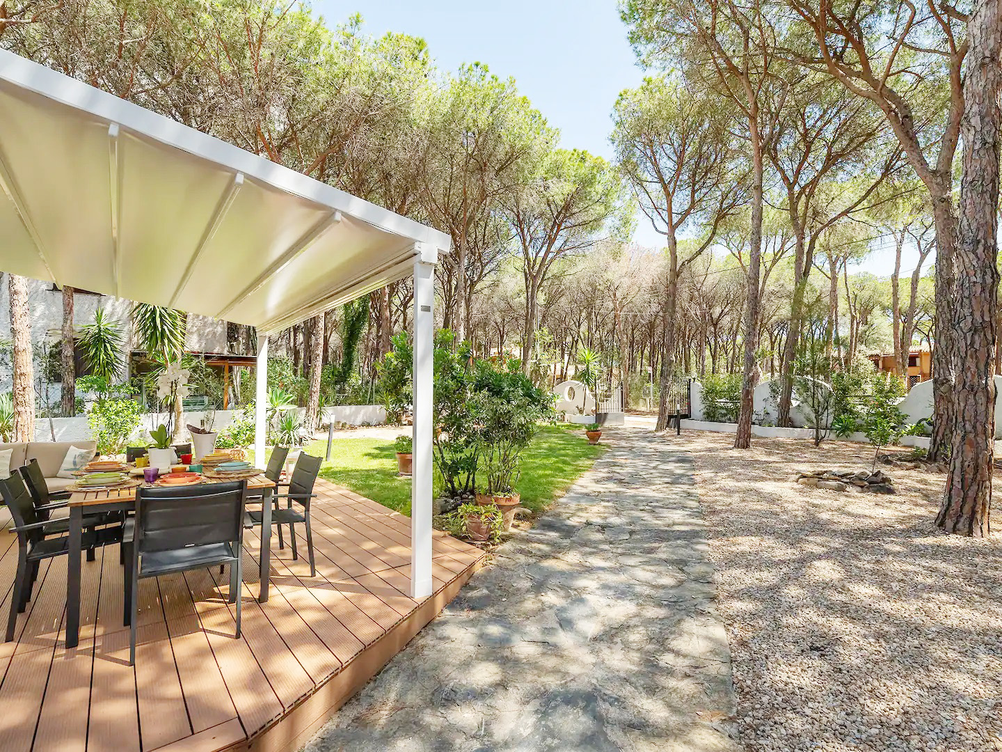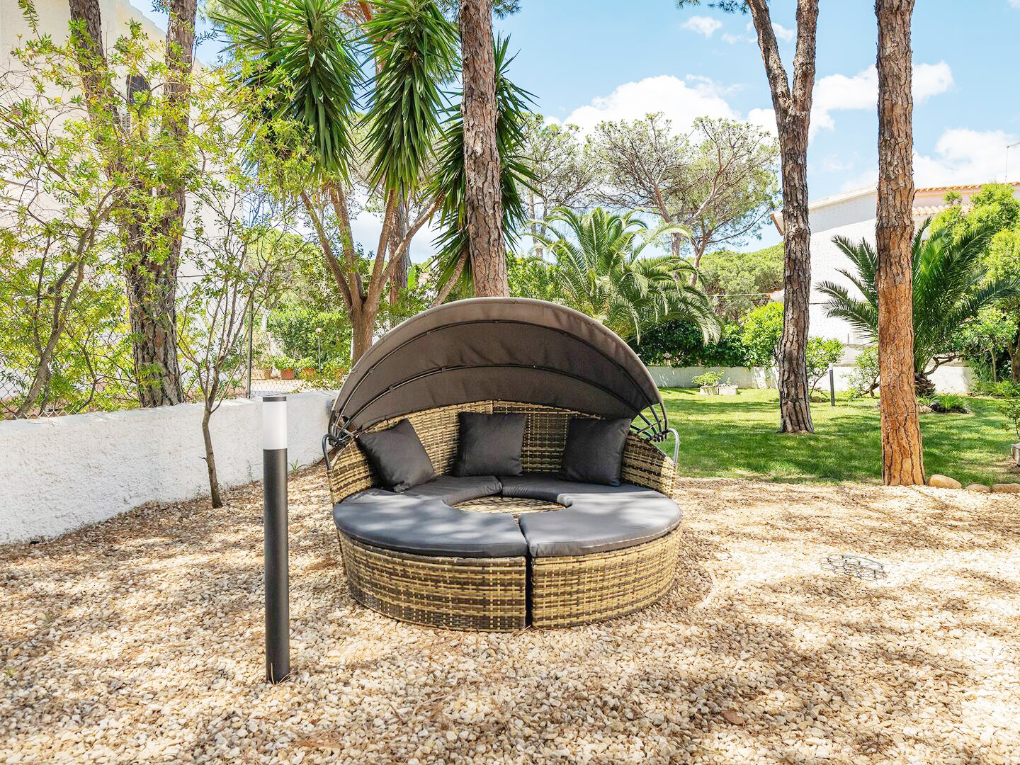 Das Ferienhaus liegt nur ca. 200 m zu Fuß von einem traumhaften weitläufigen weißen Sandstrand und kristallklarem Meer entfernt und bietet einen schönen Spaziergang durch die von Bäumen gesäumten Alleen der Wohnanlage.