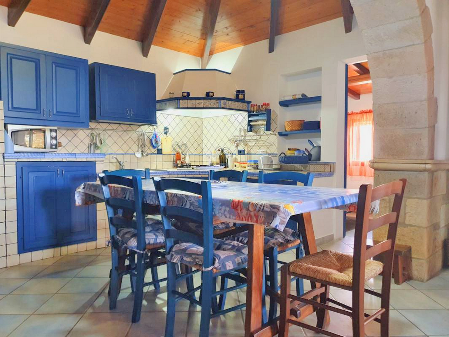 Zusätzliche Ausstattung: TV-SAT-Flachbildschirm - Waschmaschine - Kühl-/ Gefrierkombination - Geschirrspülmaschine - Gasherd mit Backofen - Mikrowelle - Toaster - Wasserkocher - Mückengitter an den Fenstern - Grillkamin im Garten - Außendusche - Autostellplätze direkt auf dem Grundstück. Das Ferienhaus benötigt keine Klimaanlage, da die Räumlichkeiten durch das Mauerwerk ausreichend gekült sind. Es stehen trotzdem Ventilatoren zur Verfügung.