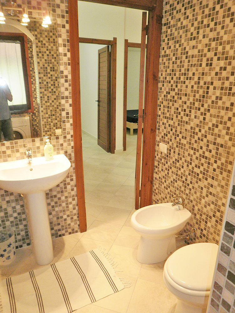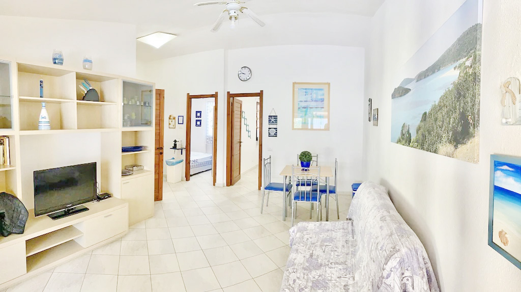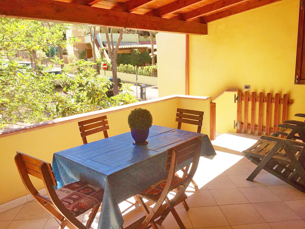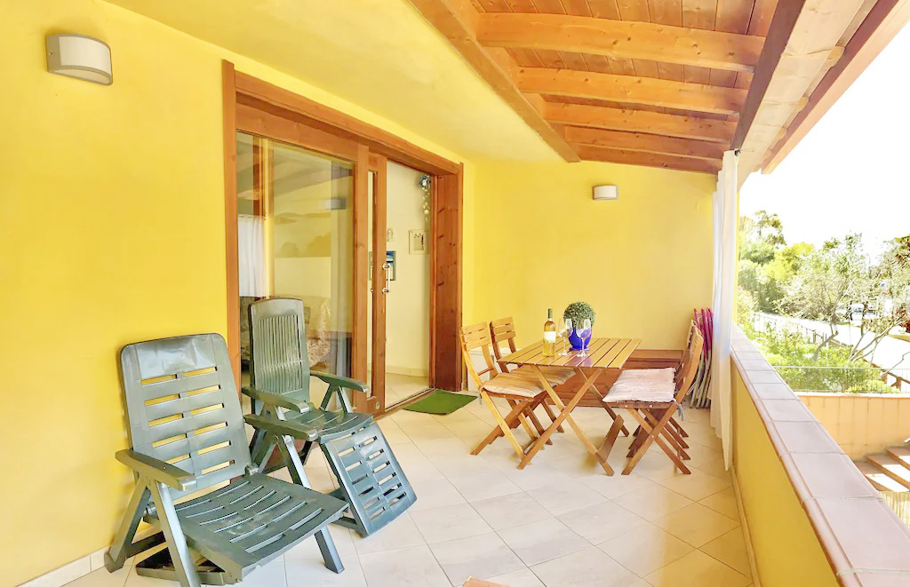 Diese Ferienwohnung befindet sich in der 2. Etage eines Reihenhauses nur wenige Schritte (keine 100 m) vom kristallklaren Meer und weißen Sandstrand von „Pinus Village“ entfernt. Dieser sehr schöne und nicht überlaufene Strand - an den sich weitere kleine Buchten ansiedeln - und dem sehr kindgerechten flachen Gewässer, eignet sich hervorragend für Familien mit kleinen Kindern. Die gesamte Wohnanlage von „Pinus Village“ ist in einer grünen üppigen Vegetation mit Pinien eingebettet und garantiert Urlaub pur. Innerhalb der Anlage bietet sich dem Gast eine Bar mit Restaurant, Spielplatz für Kinder, Pool (saisonbedingt geöffnet), Tennisplatz, Kiosk am Strand wo auch Sonnenschirme und Liegestühlen gemietet werden können. Ebenfalls nur wenige Autominuten entfernt liegen die traumhaften Strände von „CHIA“ (ca. 5 km) und „Tuerredda“ (ca. 7 km).
