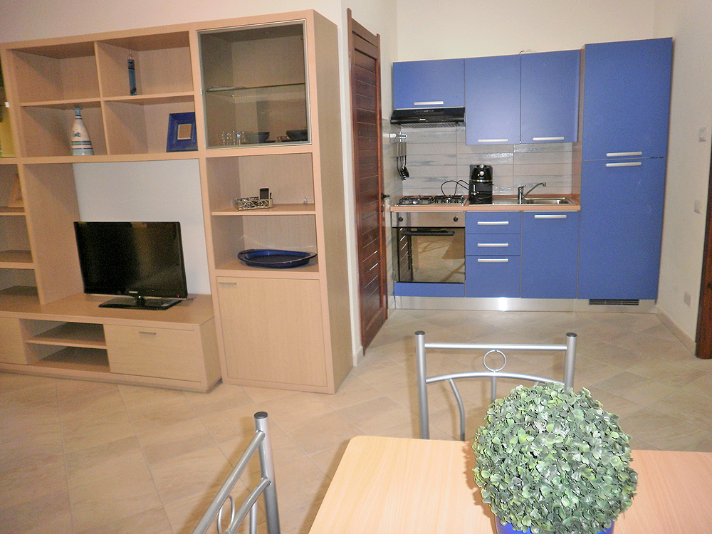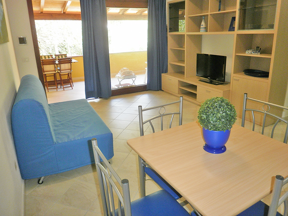 Das Ferienobjekt „Viola“ (ca. 58 qm) ist komplett haushaltsgerecht ausgestattet und teilt sich auf einer Ebene wie folgt auf: 1 großer Wohn-/ Essraum mit integrierter Küche und Schlafsofa - 1 Schlafzimmer mit Ehebetten - 1 weiteres Schlafzimmer mit franz. Ehebett - 1 Badezimmer mit Dusche/ WC/ Bidet - möblierte Terrasse mit Blick zu den Pinienbäumen. Es besteht bei diesem Objekt eine Belegungsmöglichkeit für max. 4 Erw. + 1 Kind.